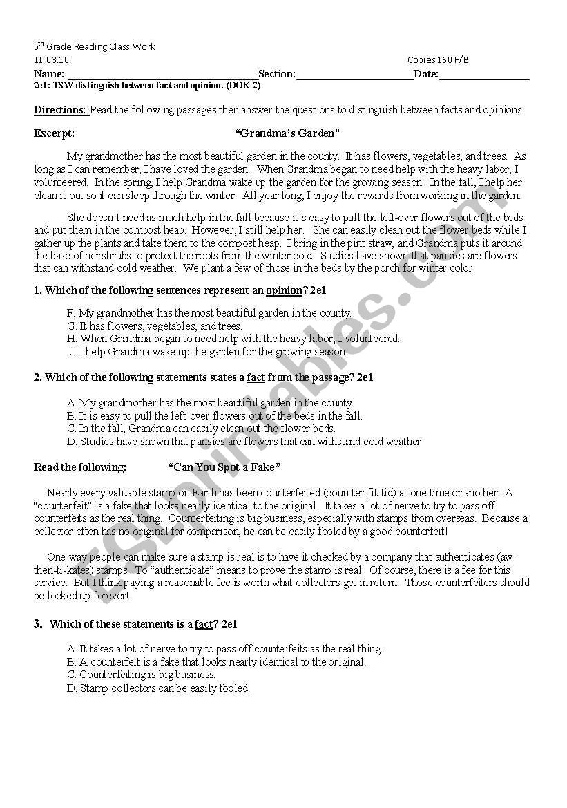 Reading comprehension is an essential skill that students develop from a young age. Fact and opinion worksheets are a valuable resource to help improve this skill. These worksheets provide students with the opportunity to differentiate between factual information and personal opinions.