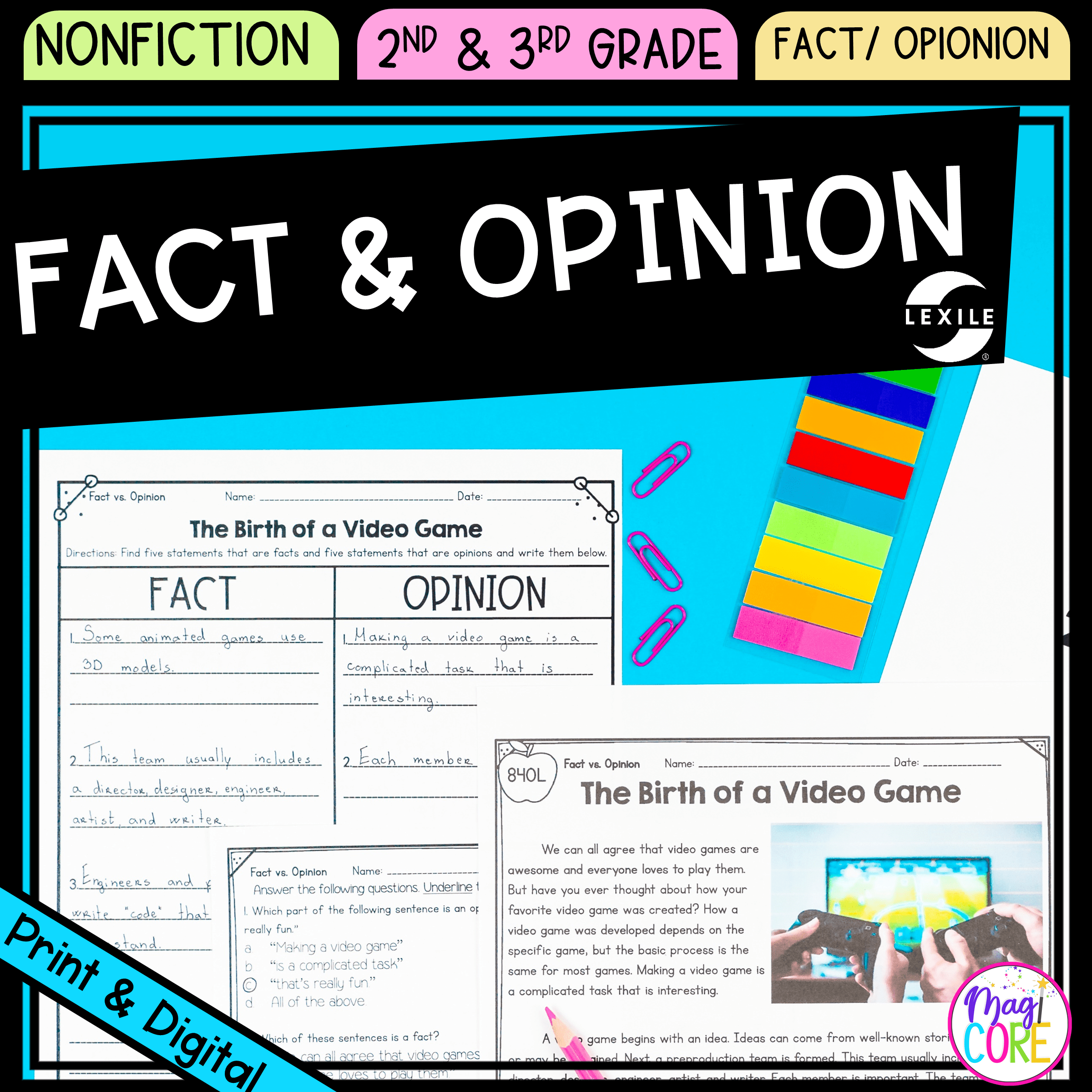 Fact U0026 Opinion 2nd U0026 3rd Grade Reading Comprehension Passages Unit