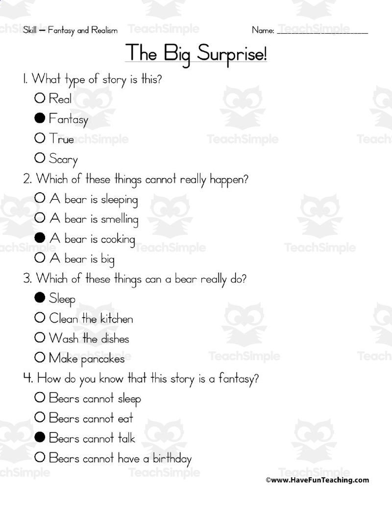 Fantasy And Reality Reading Comprehension Worksheet By Teach Simple