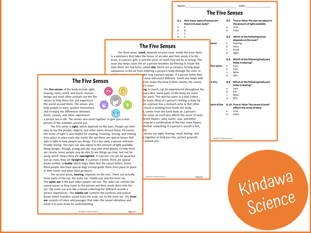 The Five Senses Reading Comprehension Passage And Questions PDF Teaching Resources