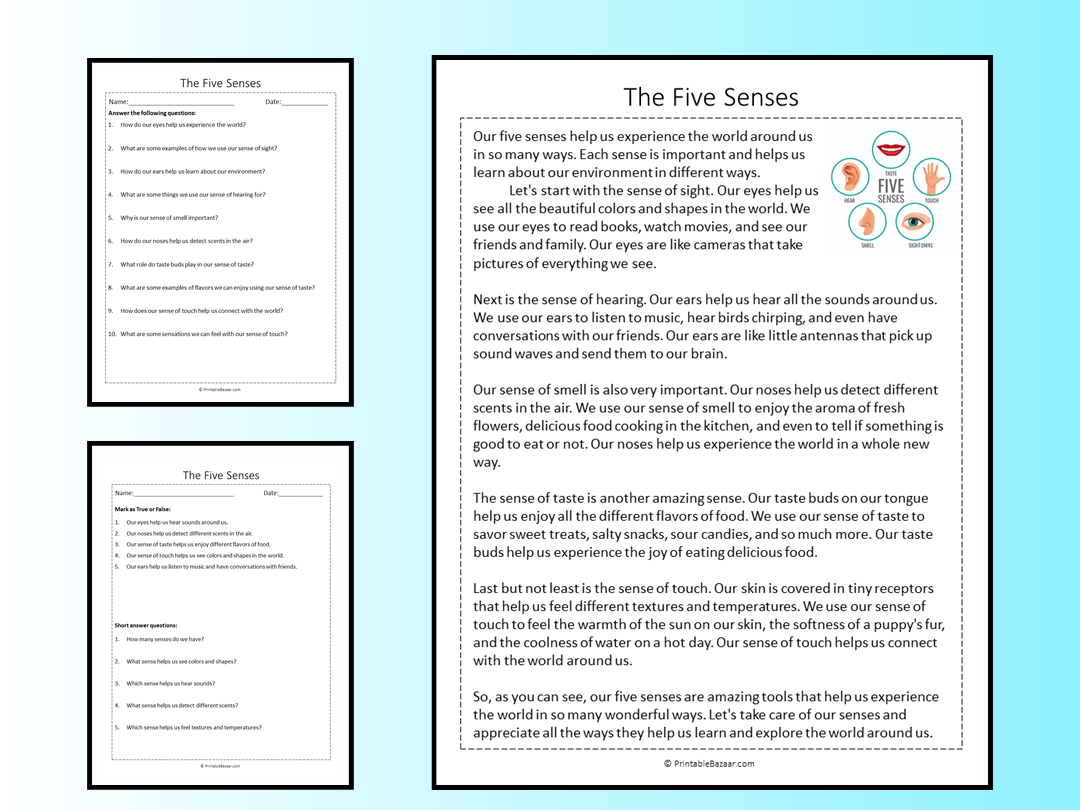 Each worksheet in the Five Senses Reading Comprehension Pdf collection offers a variety of activities that cater to different learning styles. From multiple-choice questions to fill-in-the-blank exercises, students can engage with the material in a way that suits their preferences.