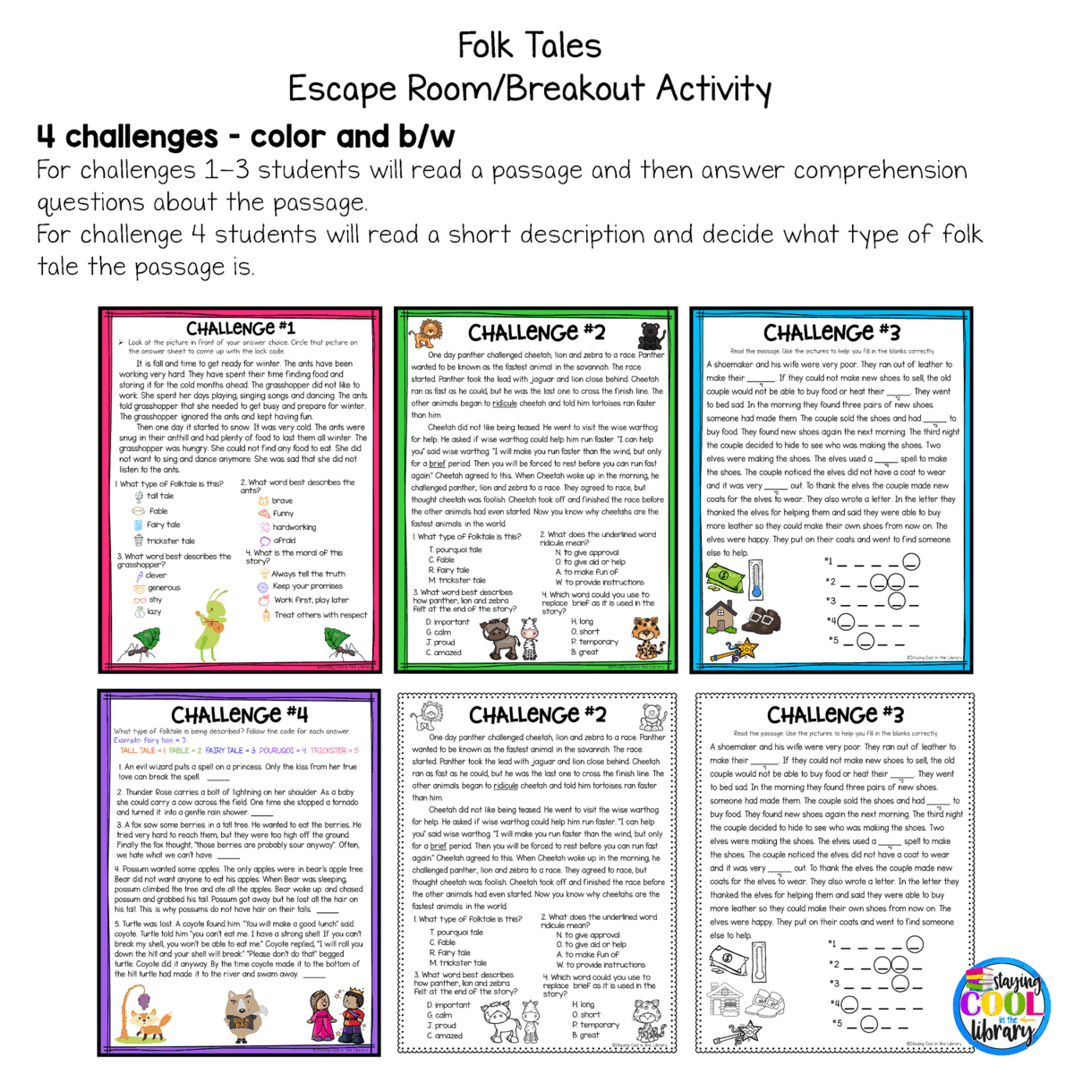 Folktales Print Breakout Escape Activity Staying Cool In The
