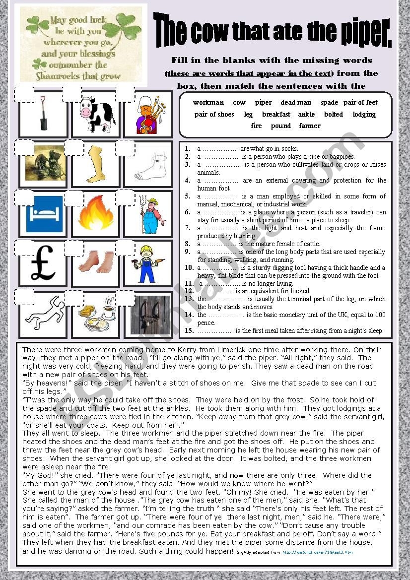 The Cow That Ate The Piper FOLKTALE Easy Reader Voca And Ex