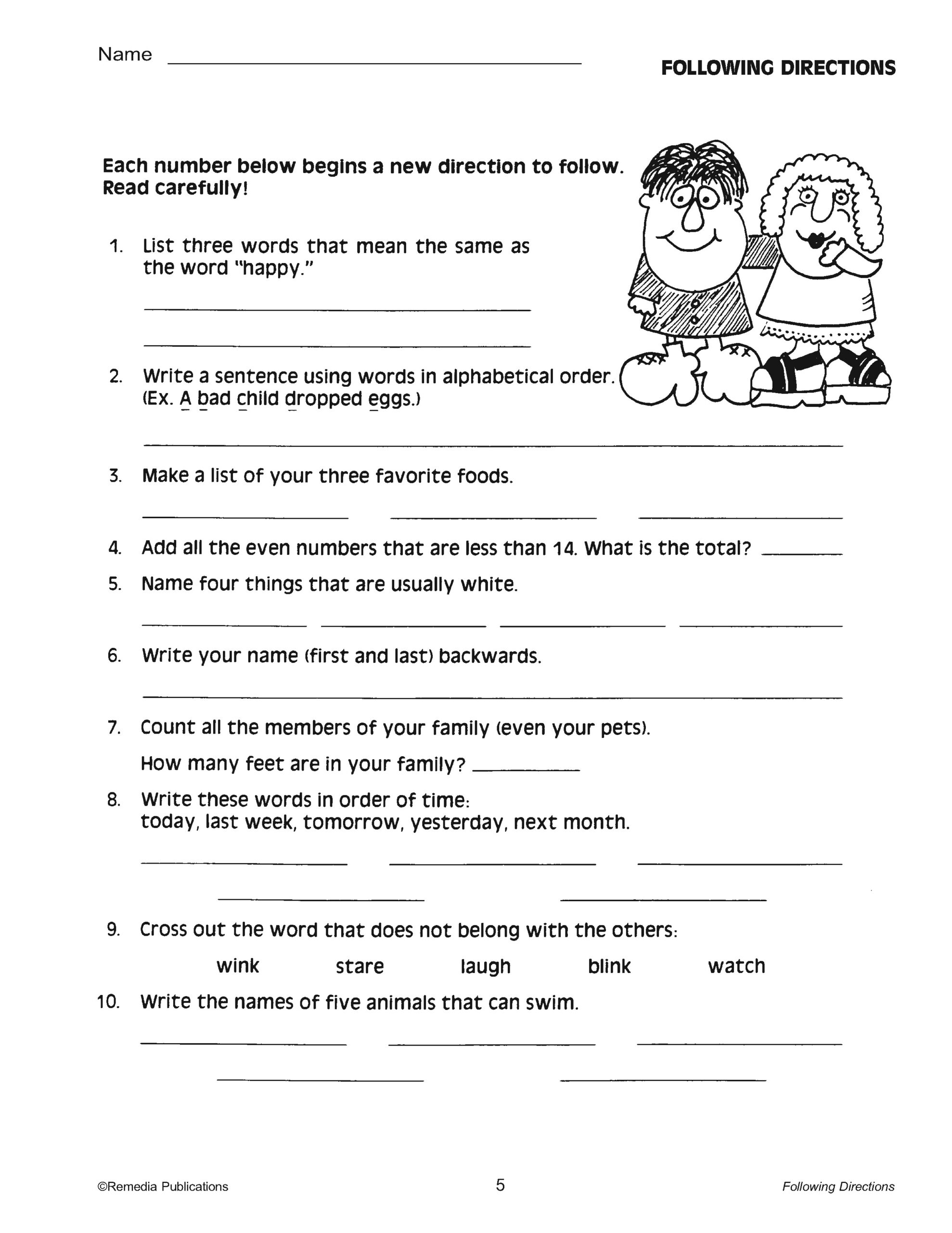 Following Directions Listening And Reading Comprehension