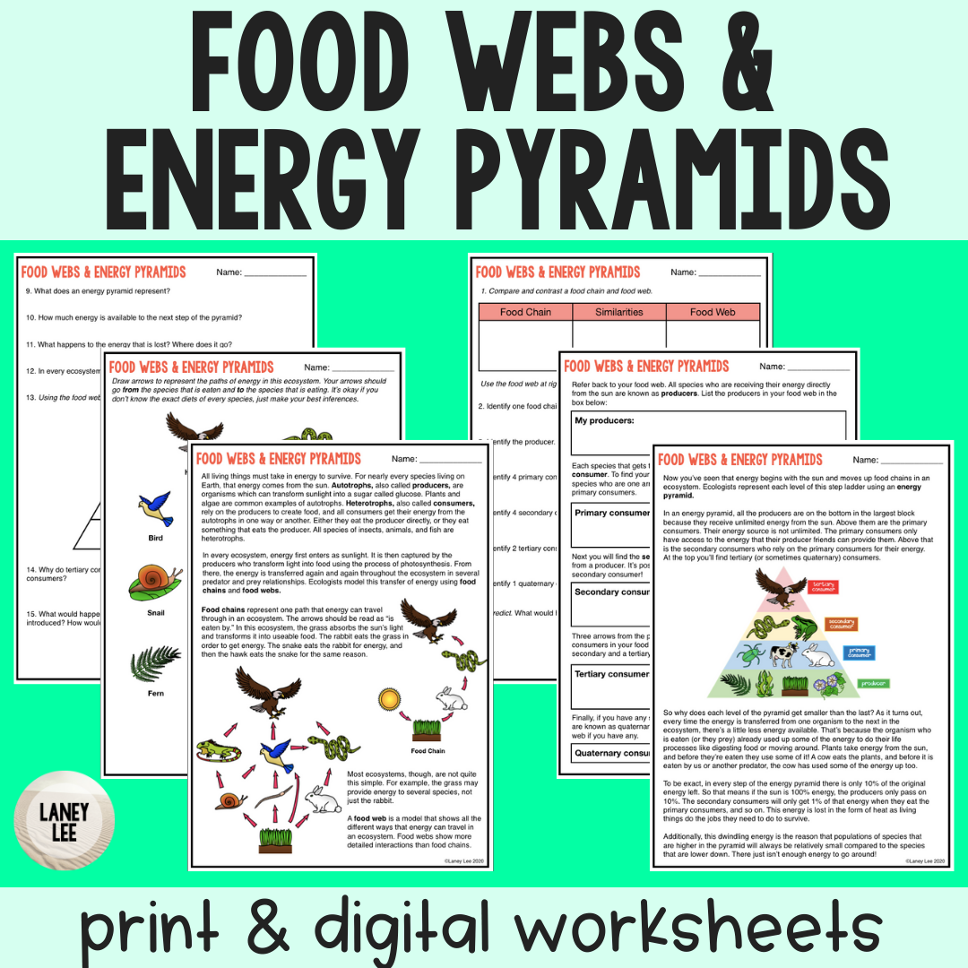 Food Chain Food Webs Energy Pyramids Reading Worksheet