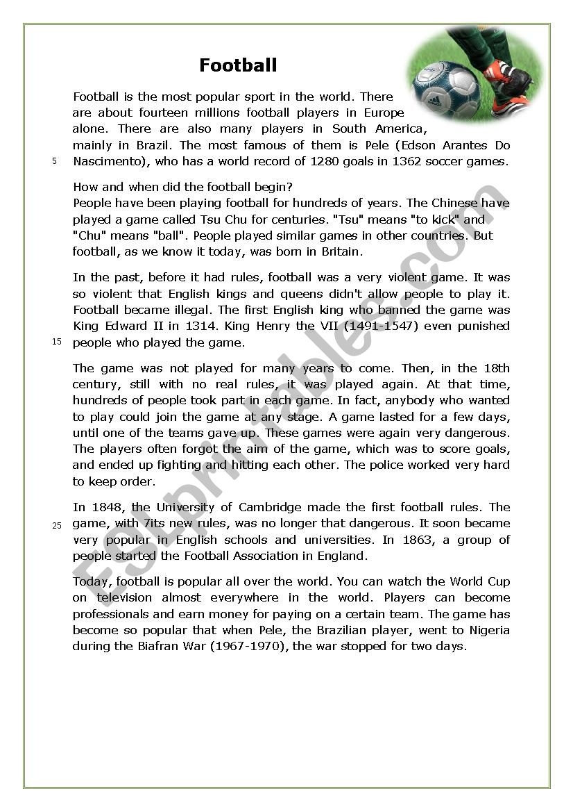 The History Of Football Reading Comprehension ESL Worksheet By Neryas