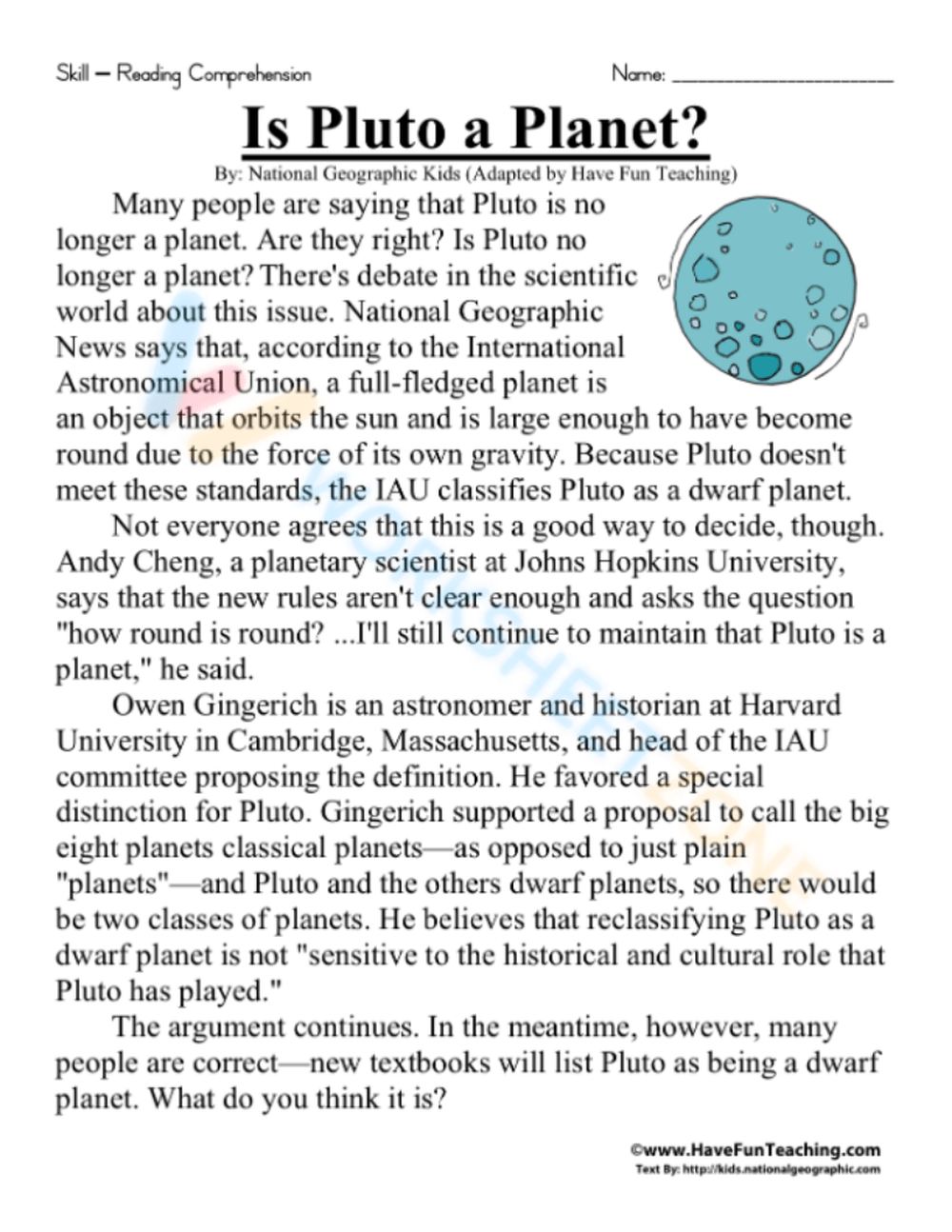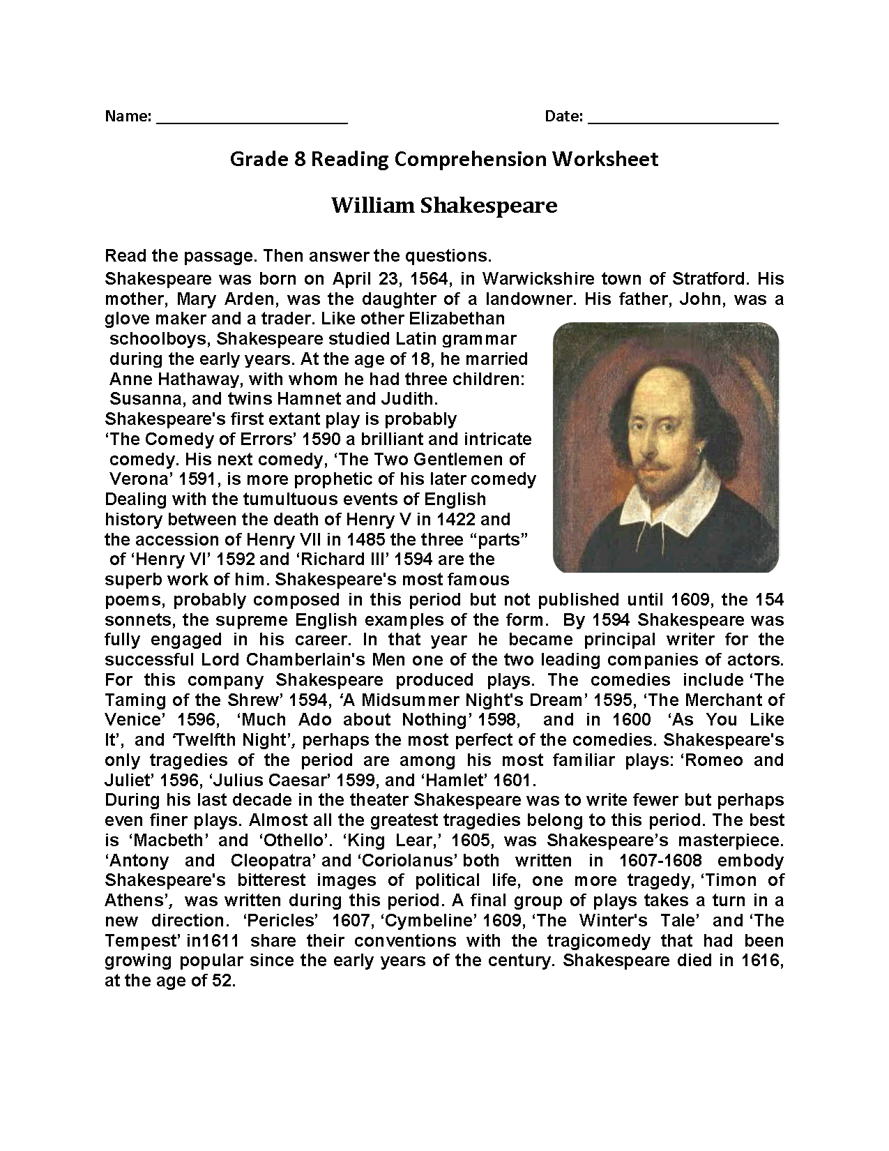 Free Eighth Grade Reading Comprehension Worksheets