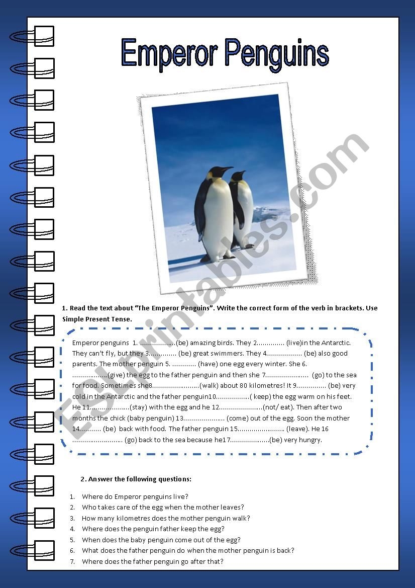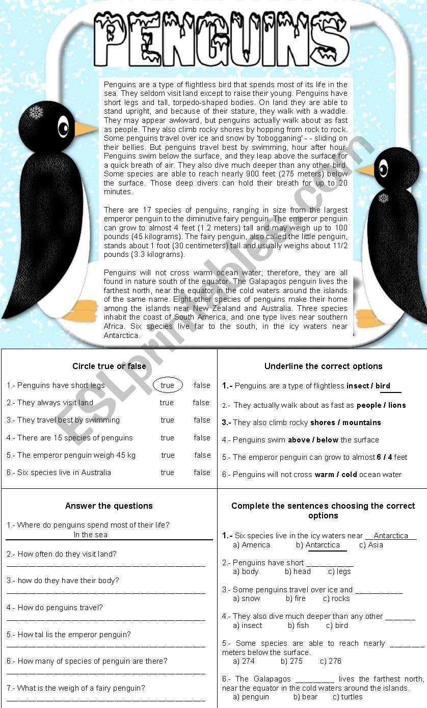 PENGUINS READING COMPREHENSION 4 DIFFERENT ACTIVITIES ESL