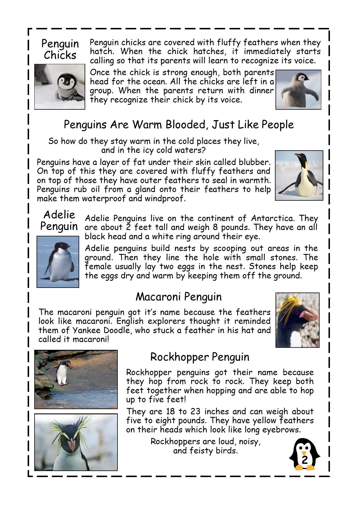 Penguin Facts Reading Comprehension Passage Made By Teachers