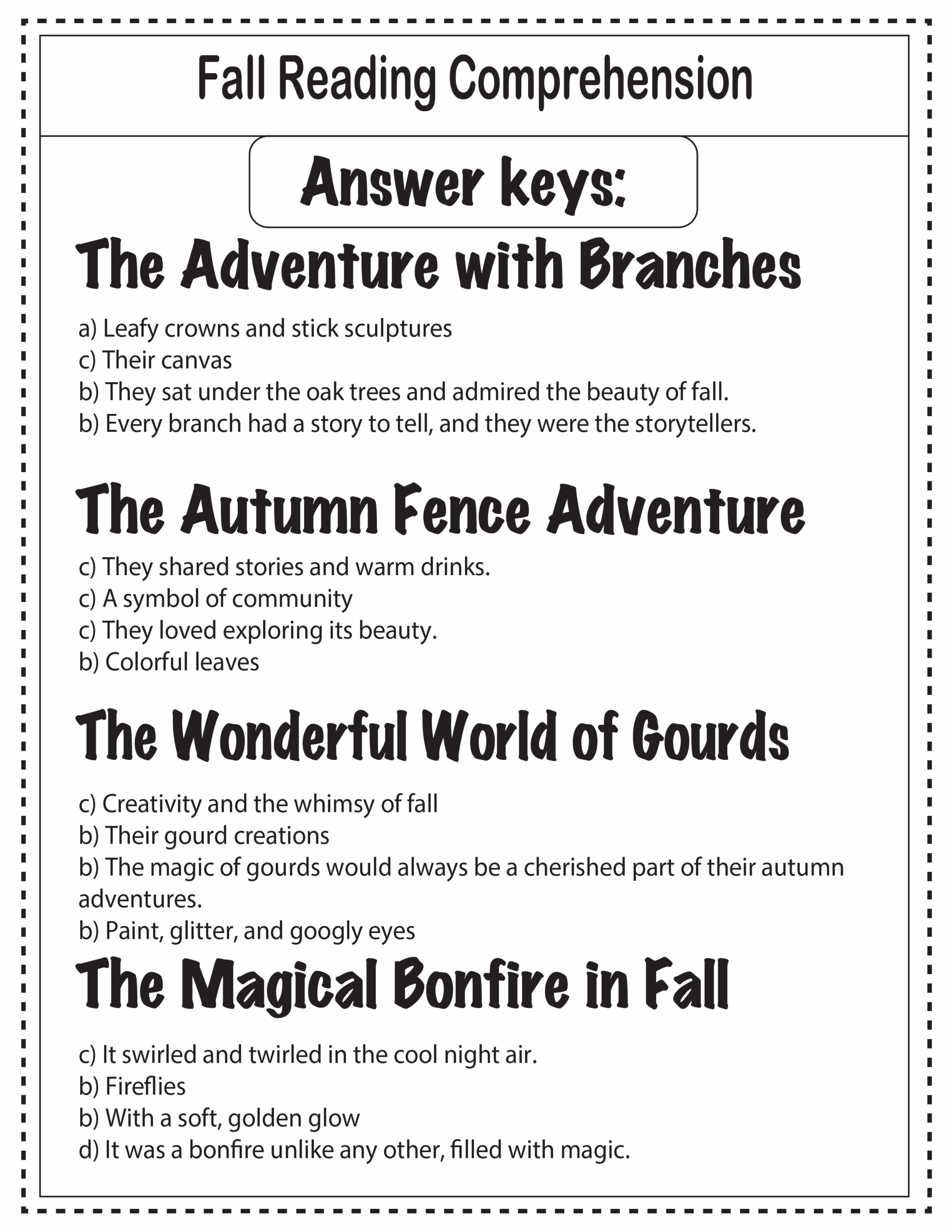 With topics ranging from autumn traditions to spooky tales, these worksheets cover a wide range of subjects to keep you entertained. Improve your reading comprehension while learning new facts about fall and sharpening your critical thinking skills.