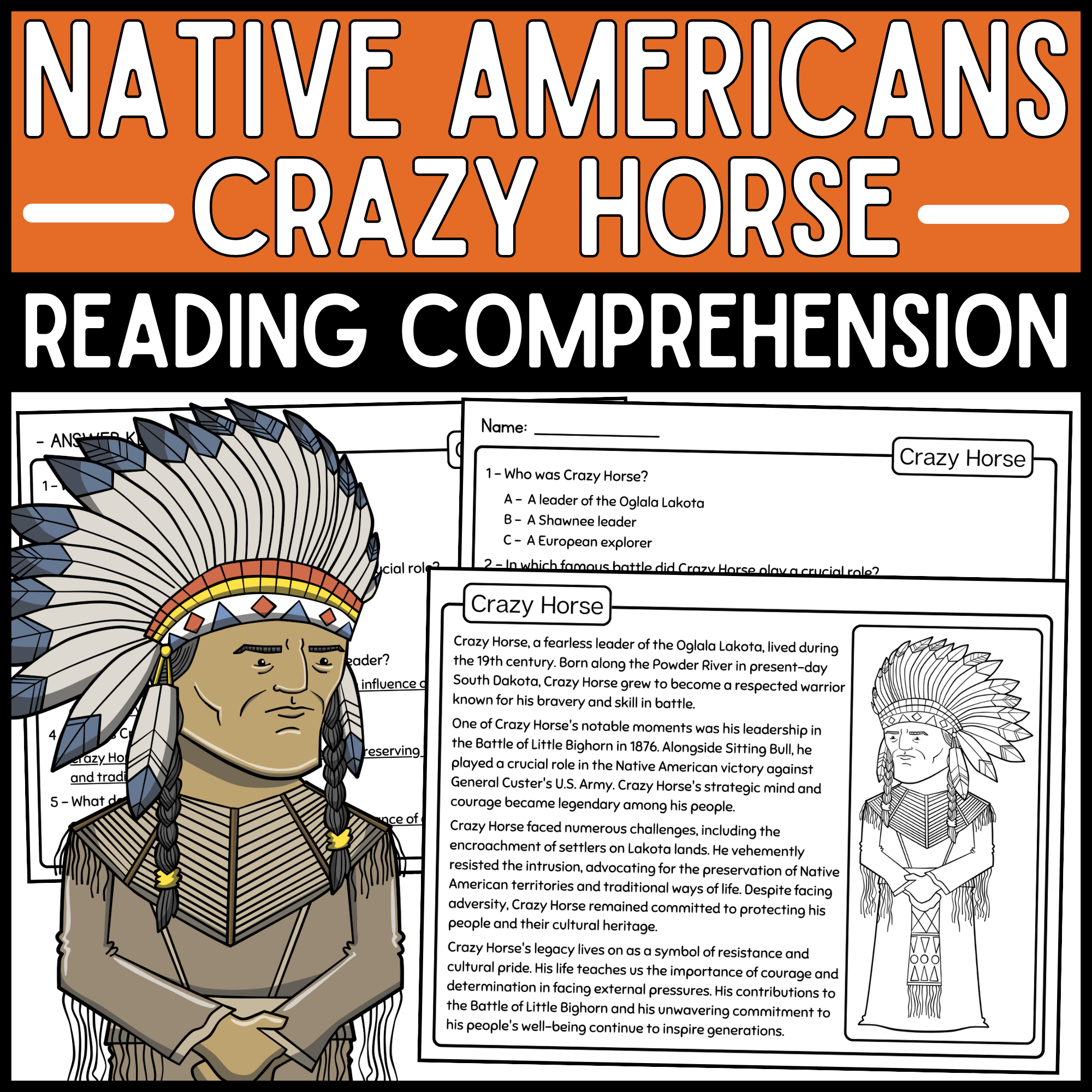 Crazy Horse Reading Comprehension Passage Native American Heritage Month