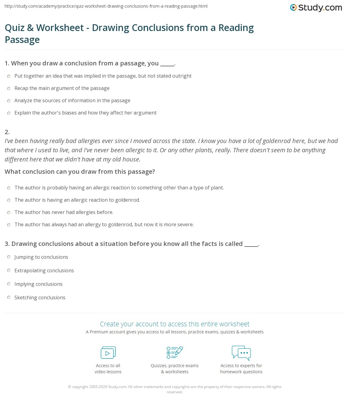 Quiz U0026 Worksheet Drawing Conclusions From A Reading Passage Study