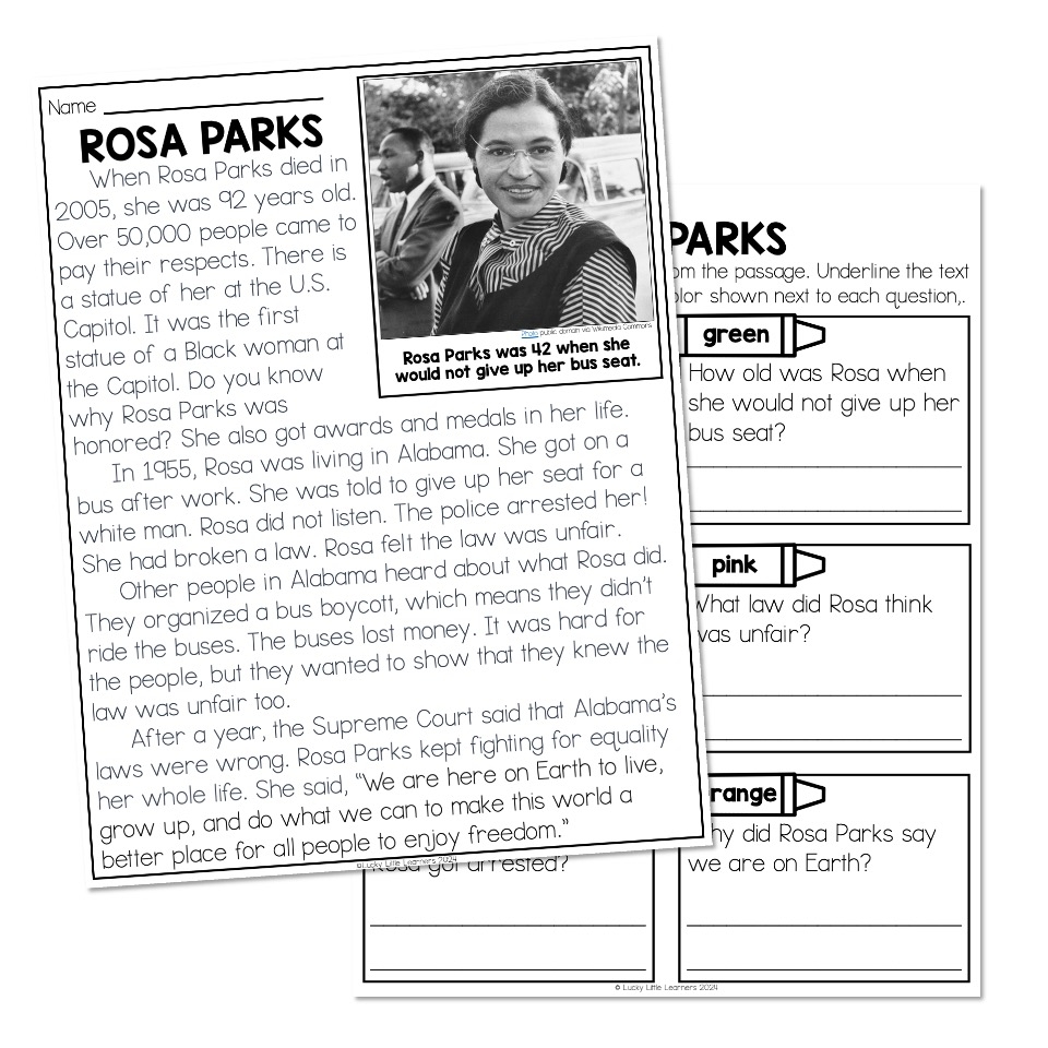 Rosa Parks Reading Comprehension Passages And Activities Worksheet No Prep Made By Teachers