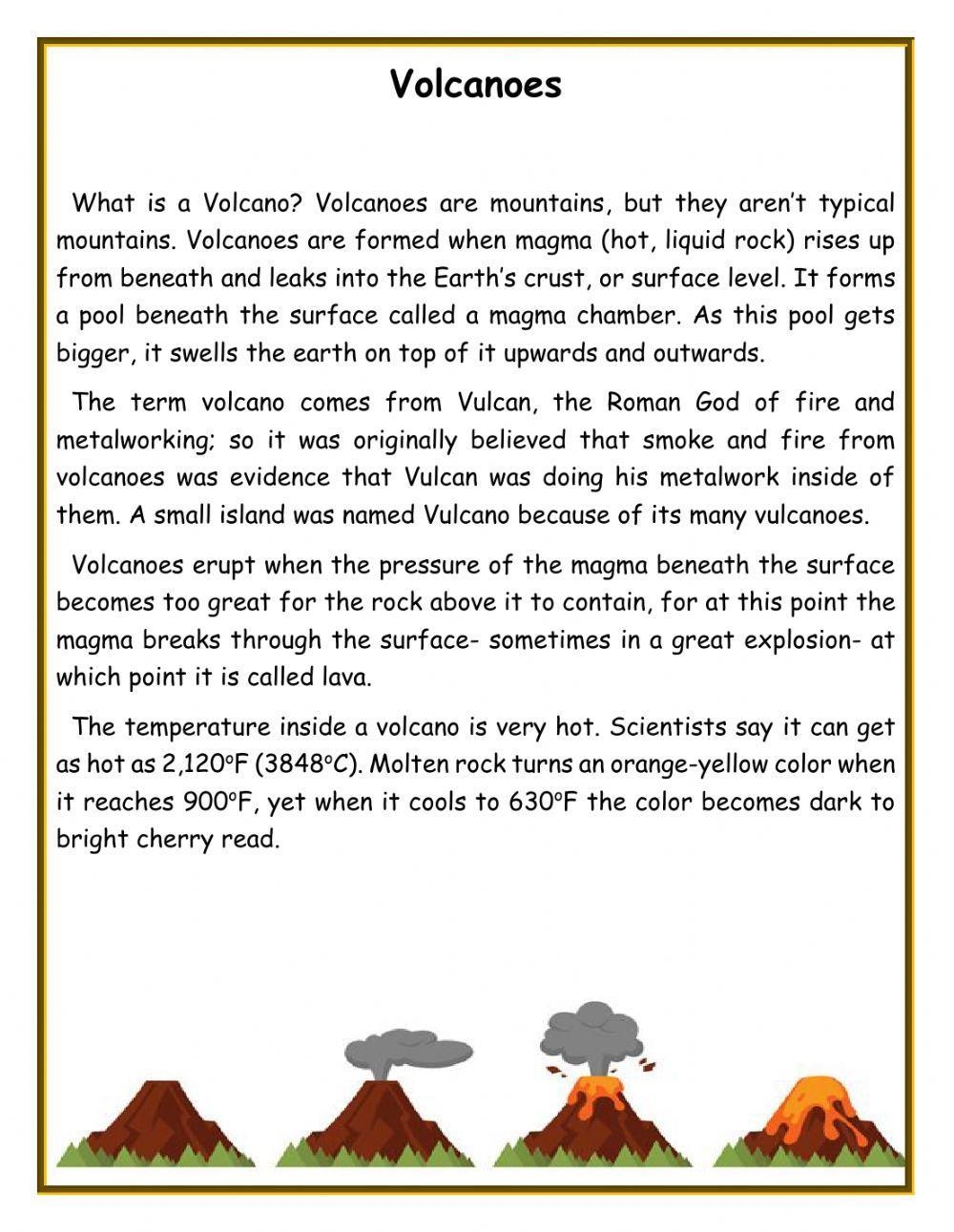 Volcanoes Reading Comprehension Worksheet Games4esl