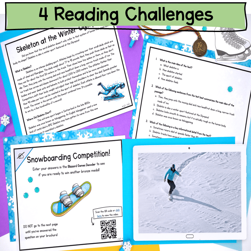 Winter Sports Reading Comprehension Escape Room U0026 Webscape 4th 5th Grade Passage