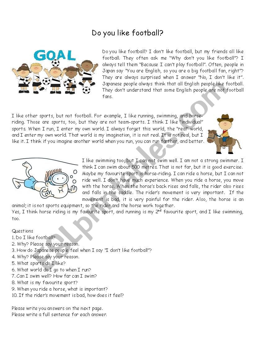 Reading Comprehension Do You Like Football In Present Simple ESL Worksheet By Matthew ELSP