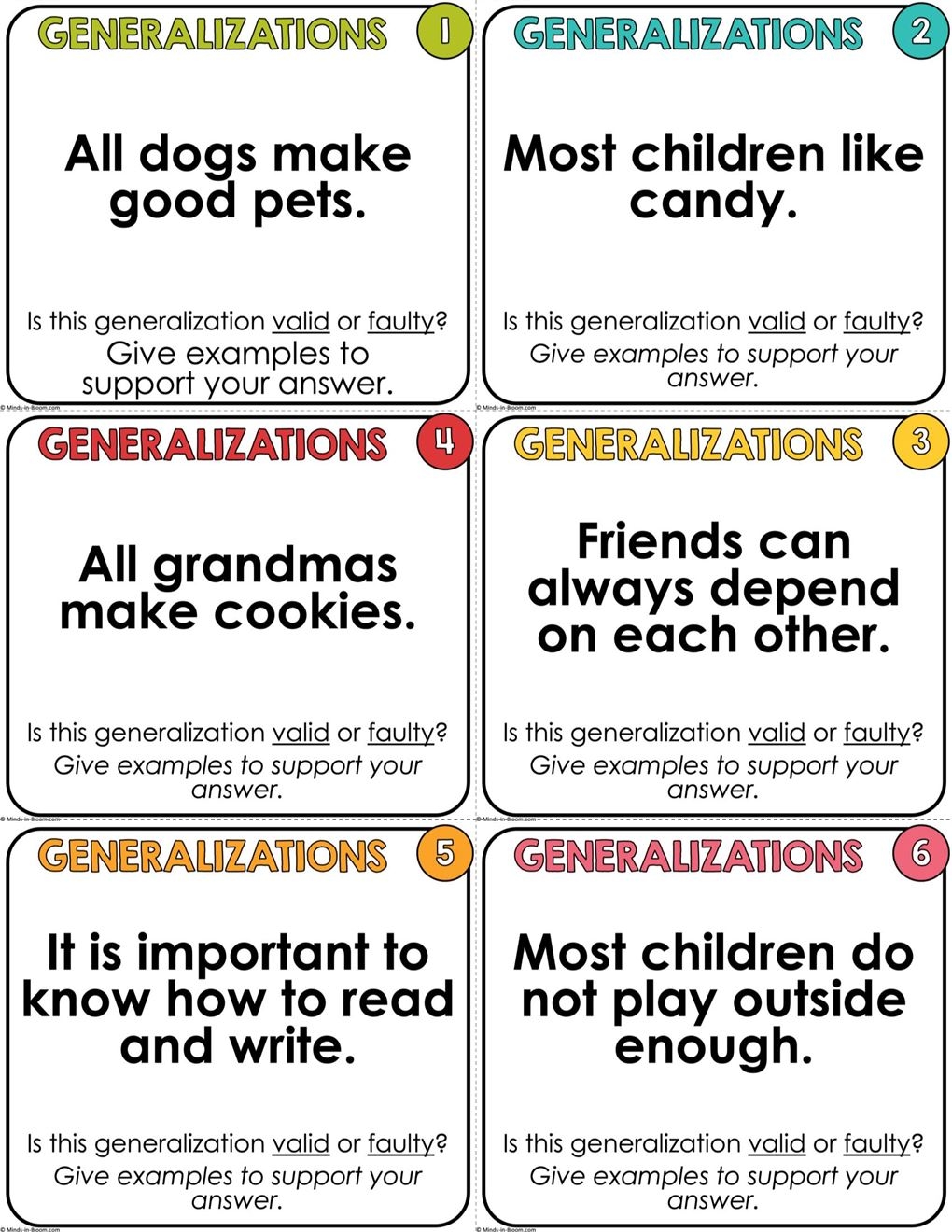 Making Generalizations Task Cards Valid Or Faulty COLOR Minds In Bloom Unlimited