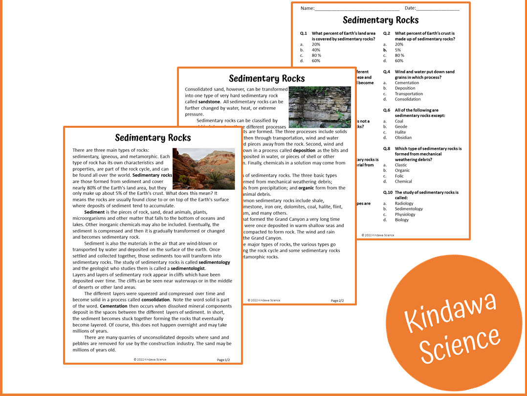 Sedimentary Rocks Reading Comprehension Passage And Questions