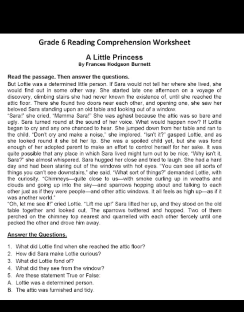 Grade 6 Reading Comprehension Worksheet A StudyX