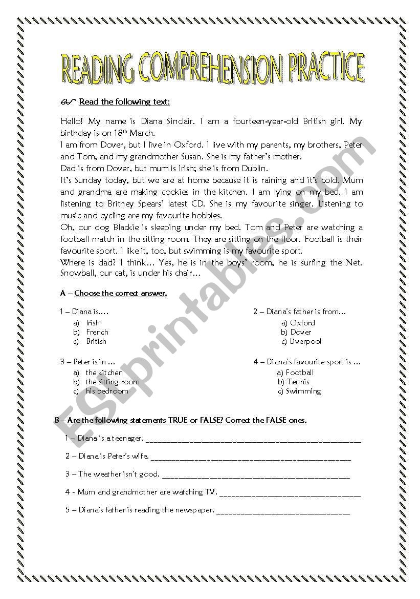 Reading Comprehension Practice For 7th Graders ESL Worksheet By Coasvaf