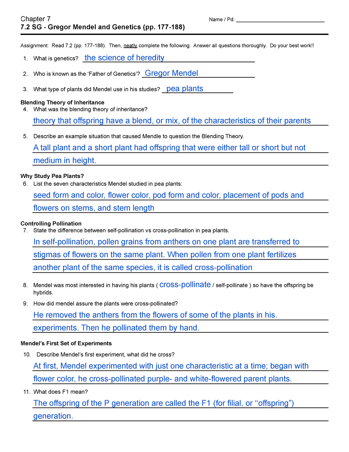 7 2 SG key Gregor Mendel And Genetics 7 SG Gregor Mendel And Worksheets Library