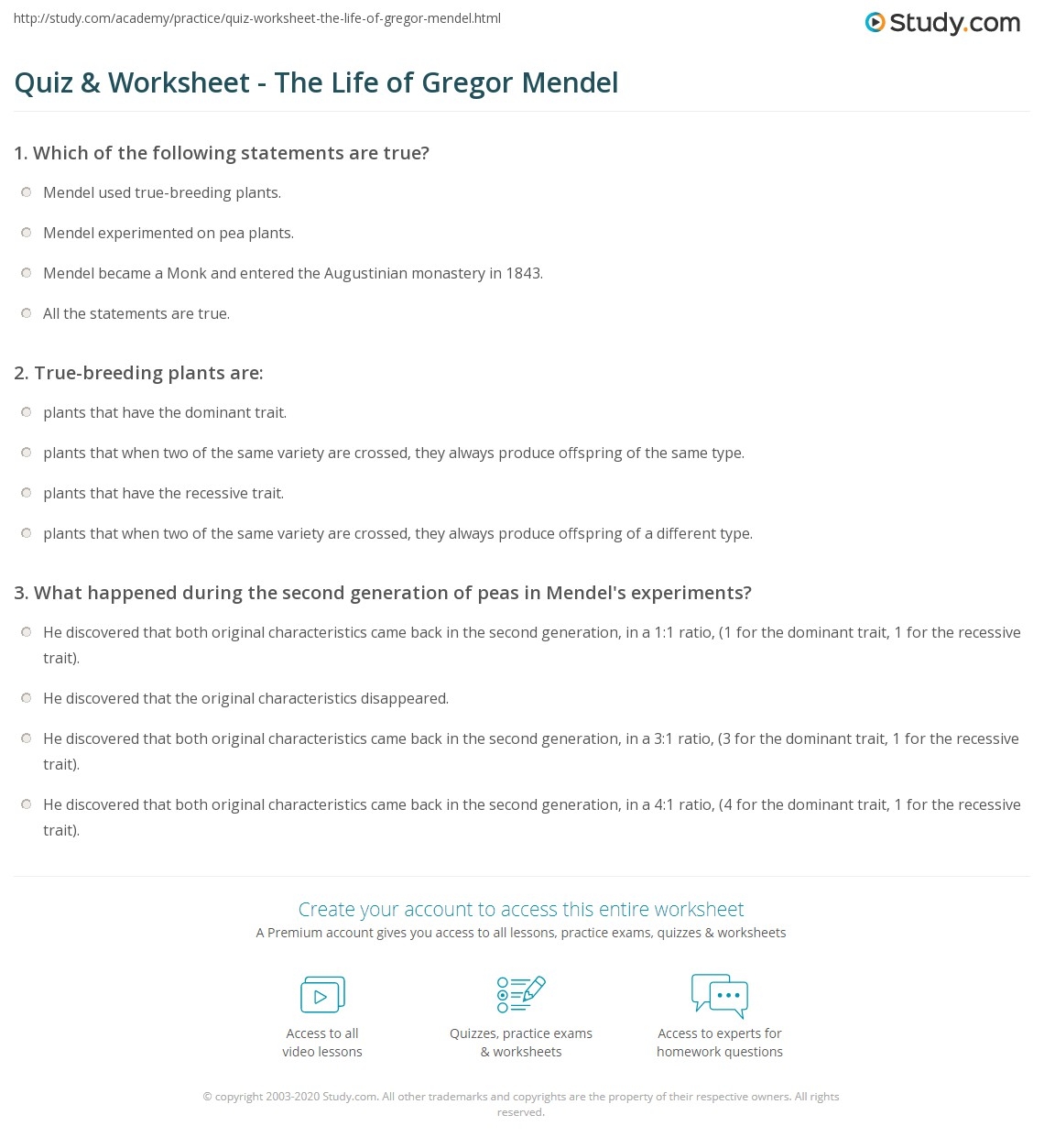 Gregor Mendel Reading Comprehension Worksheet Pdf