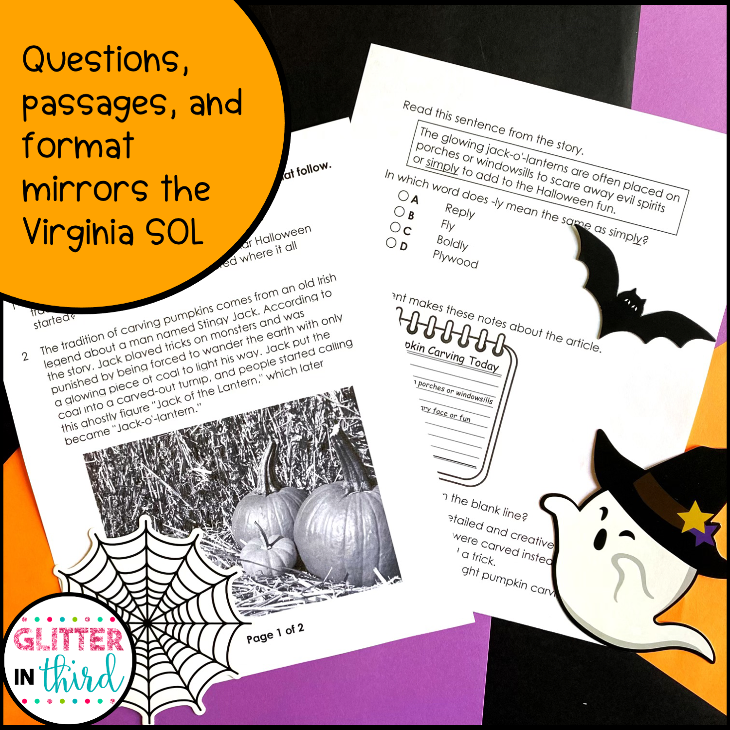 Halloween 5th Grade Reading SOL Passage Review Glitter In Third