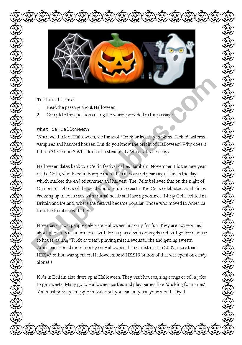 Reading Comprehension On Halloween ESL Worksheet By Mj ay2002