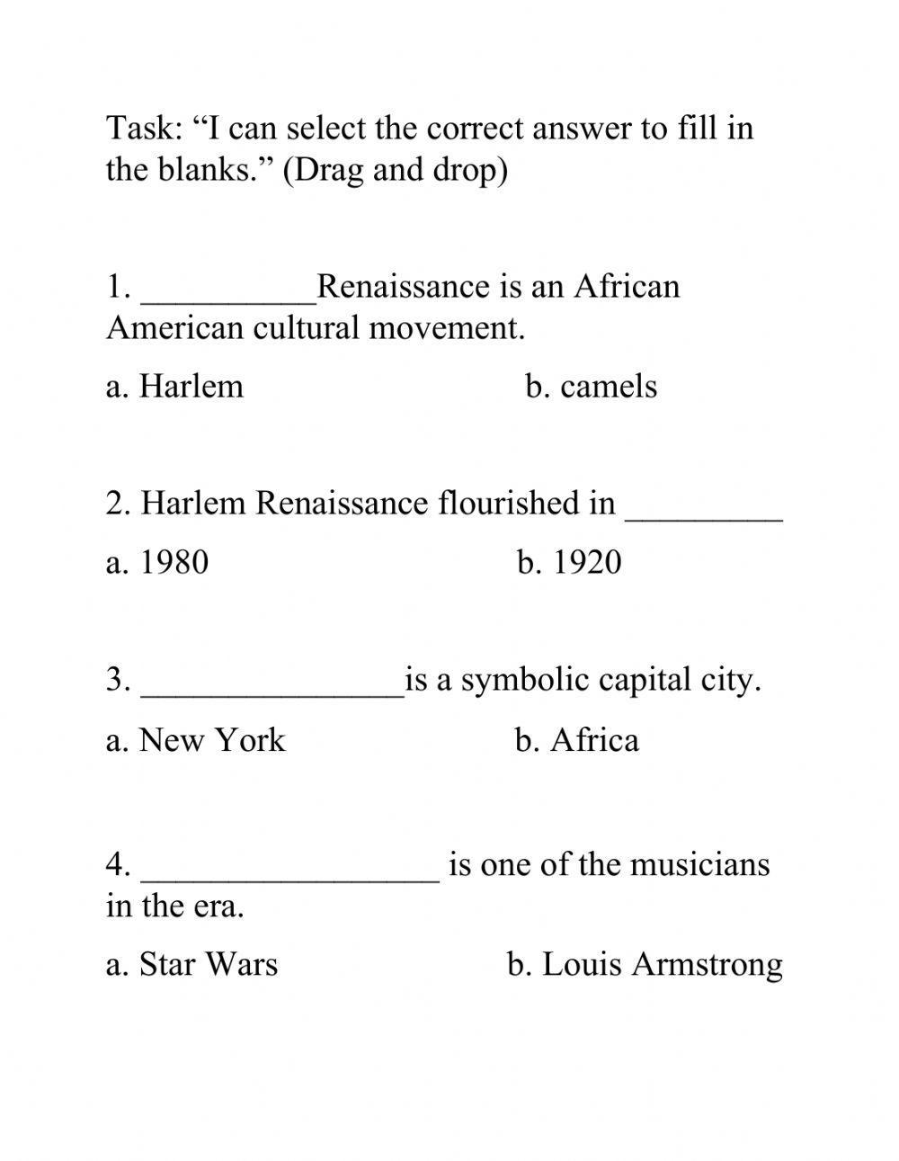 Whether you’re a teacher looking to supplement your curriculum or a parent wanting to support your child’s learning at home, our PDF worksheets are a valuable resource for exploring the Harlem Renaissance in an interactive and meaningful way.