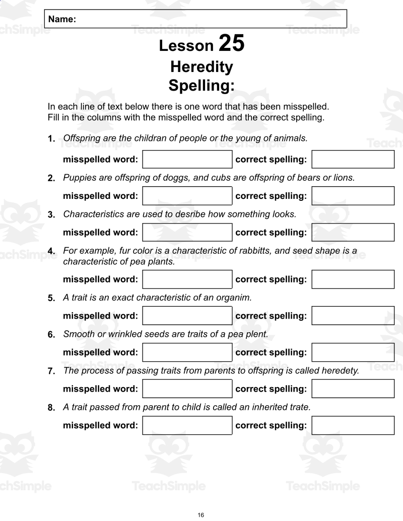 Heredity Reading Comprehension Worksheet