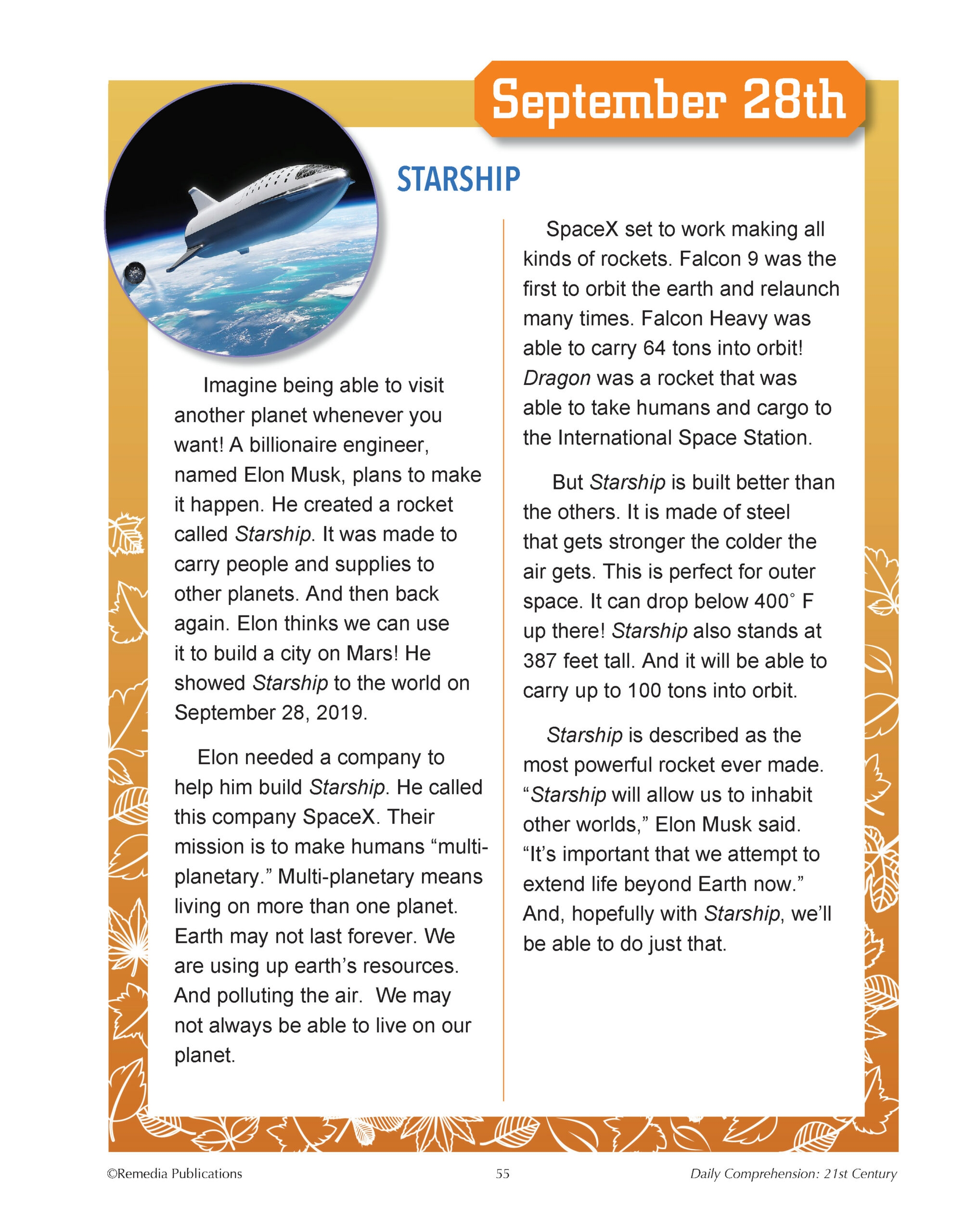 21st Century SEPTEMBER DAILY COMPREHENSION High Interest Reading