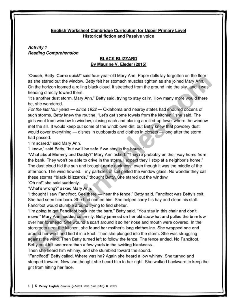 Historical Fiction Black Blizzard And Passive Voice Simple Present And Past Tense Worksheet ESL Worksheet By Vampireluph