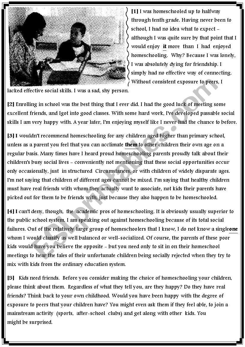 Reading Comprehension Homeschooling ESL Worksheet By Hisham