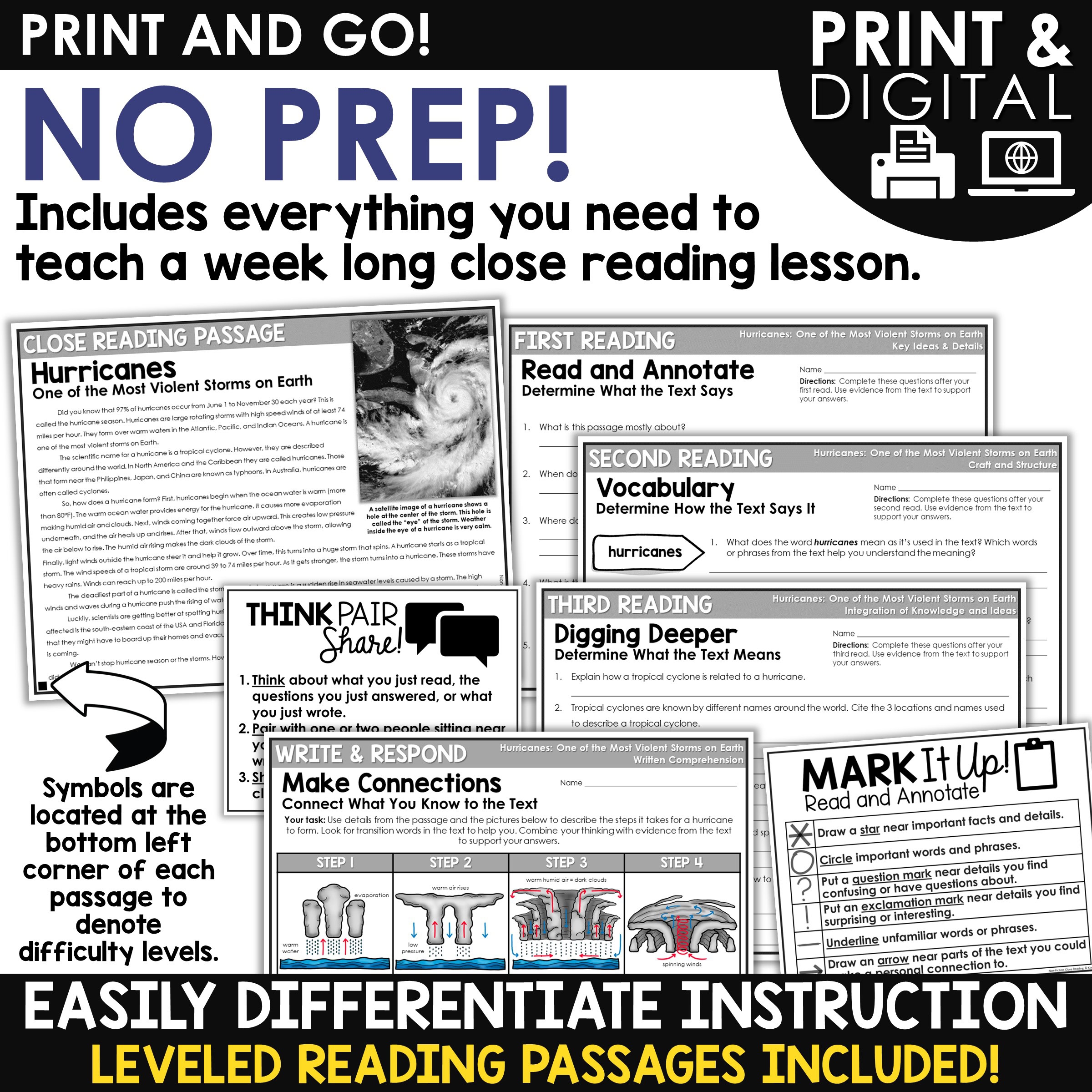 Hurricanes Natural Disasters Differentiated Close Reading Comprehension Passages A Love Of Teaching Kim Miller