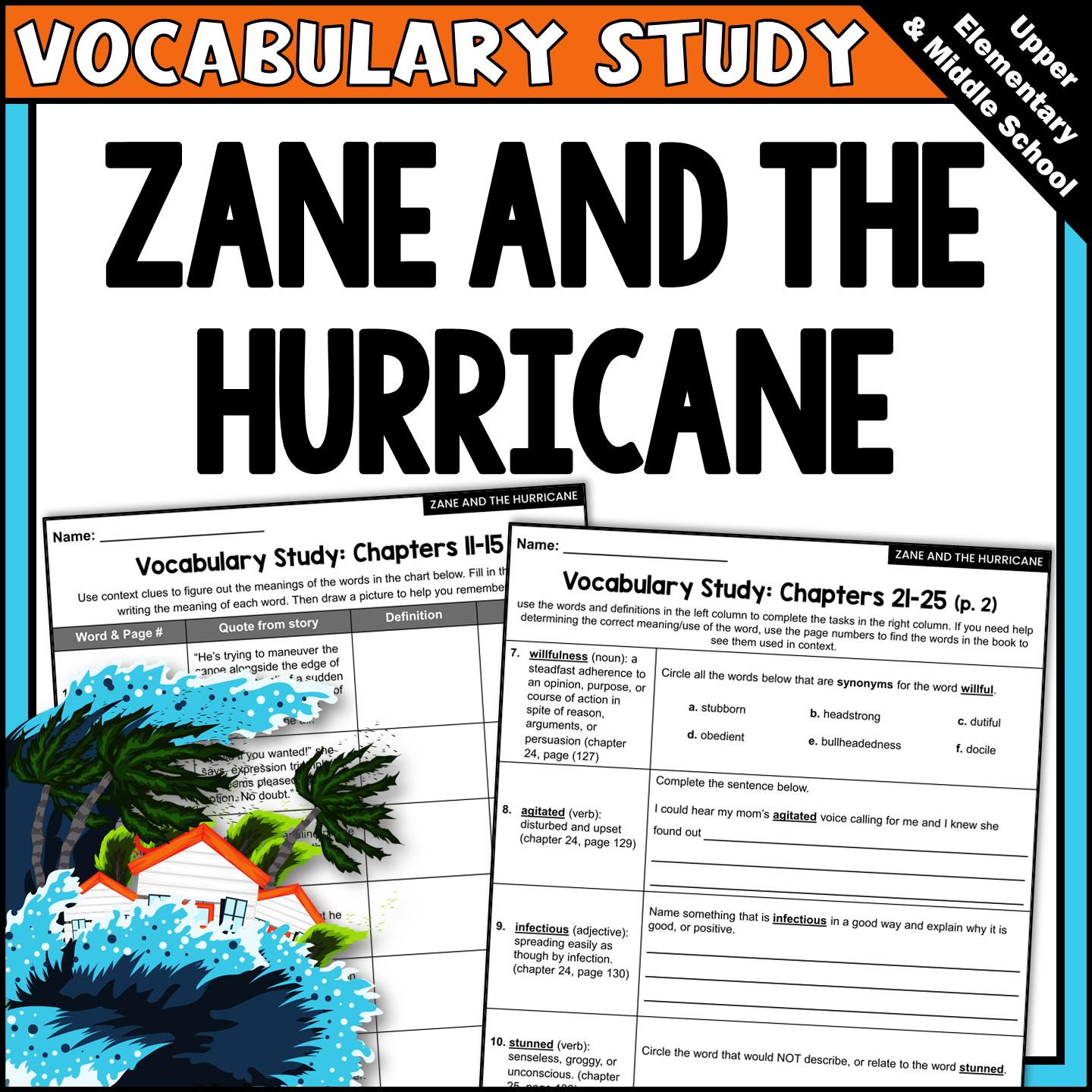 Zane And The Hurricane Novel Study Vocabulary Activities And Quizzes Made By Teachers