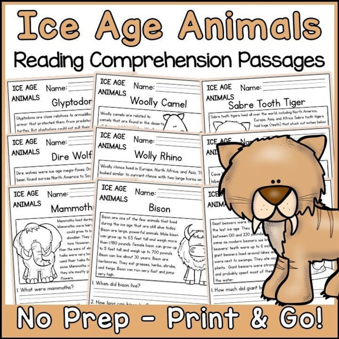 Ice Age Animals Reading Comprehension Passages And Questions Science Printable Worksheets Etsy