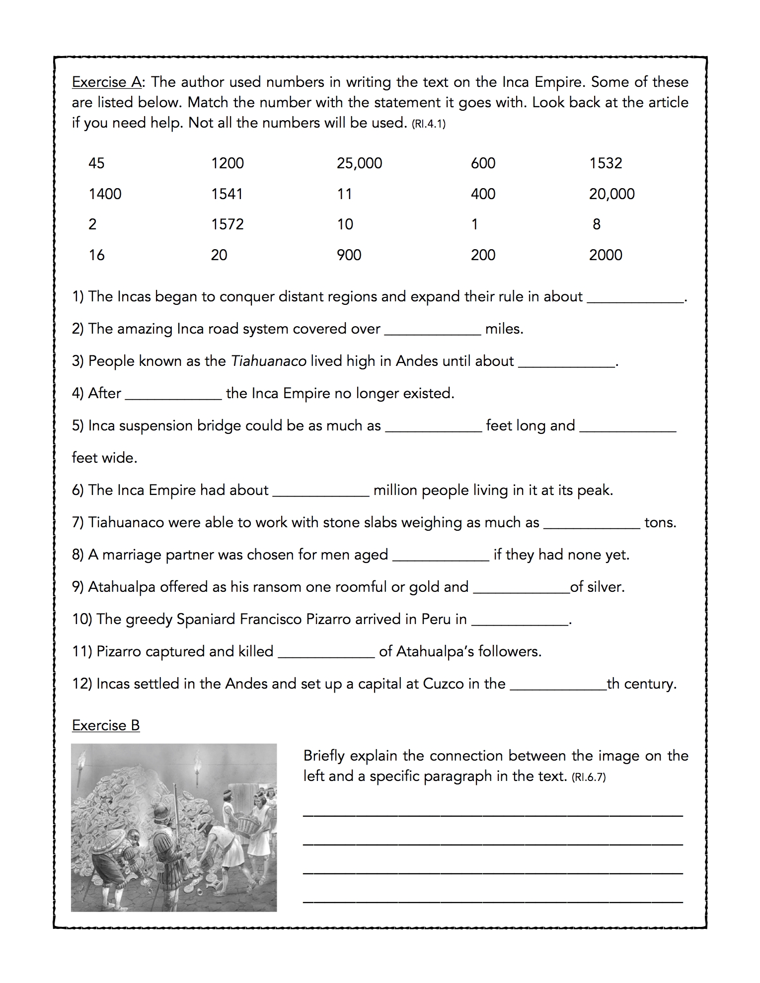 Inca Reading Comprehension Worksheets