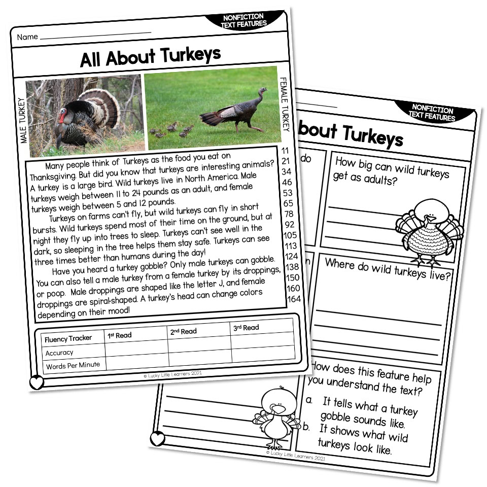 2nd Grade Nonfiction Text Features Reading Passage All About