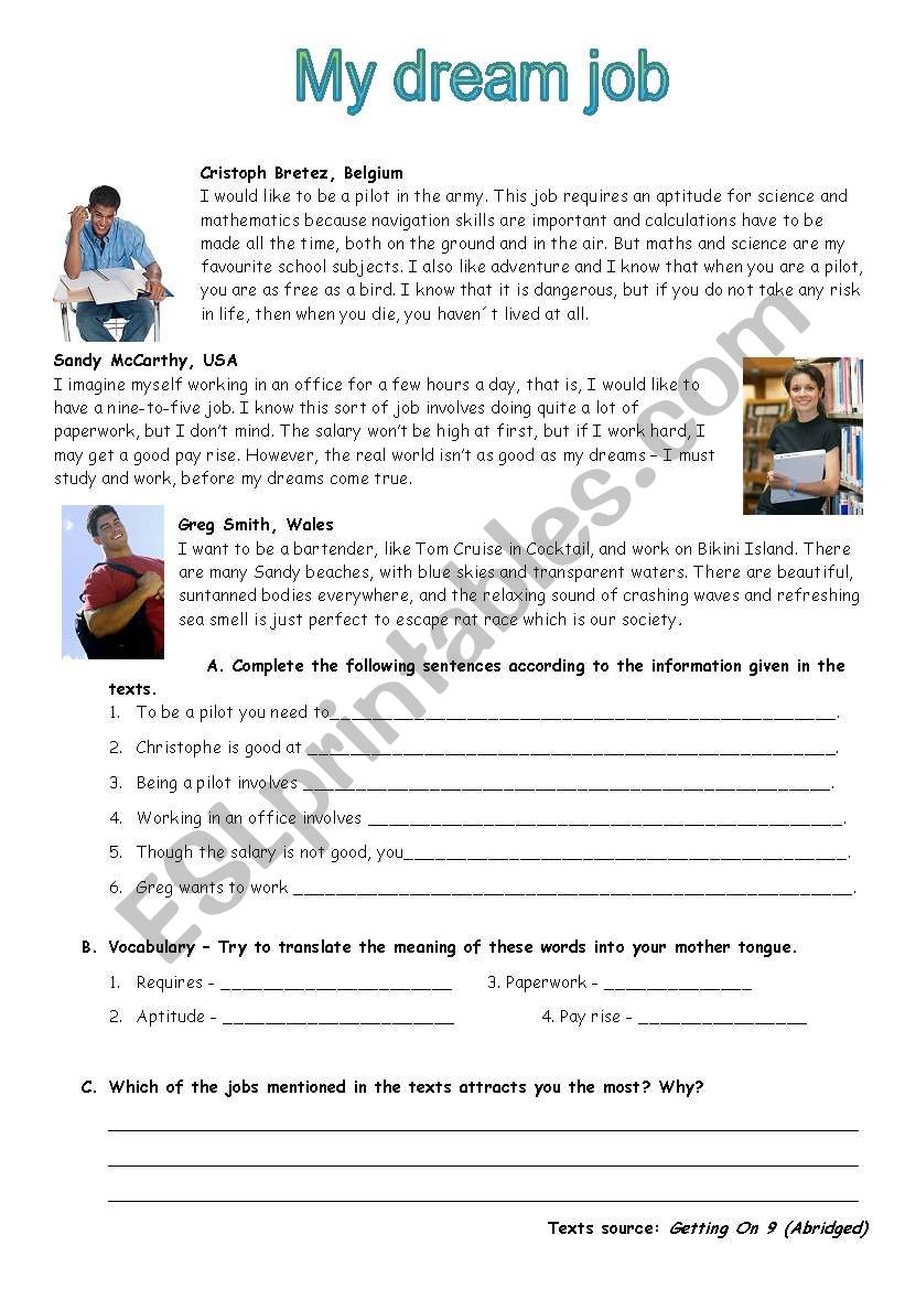 Dream Job ESL Worksheet By Susaninha