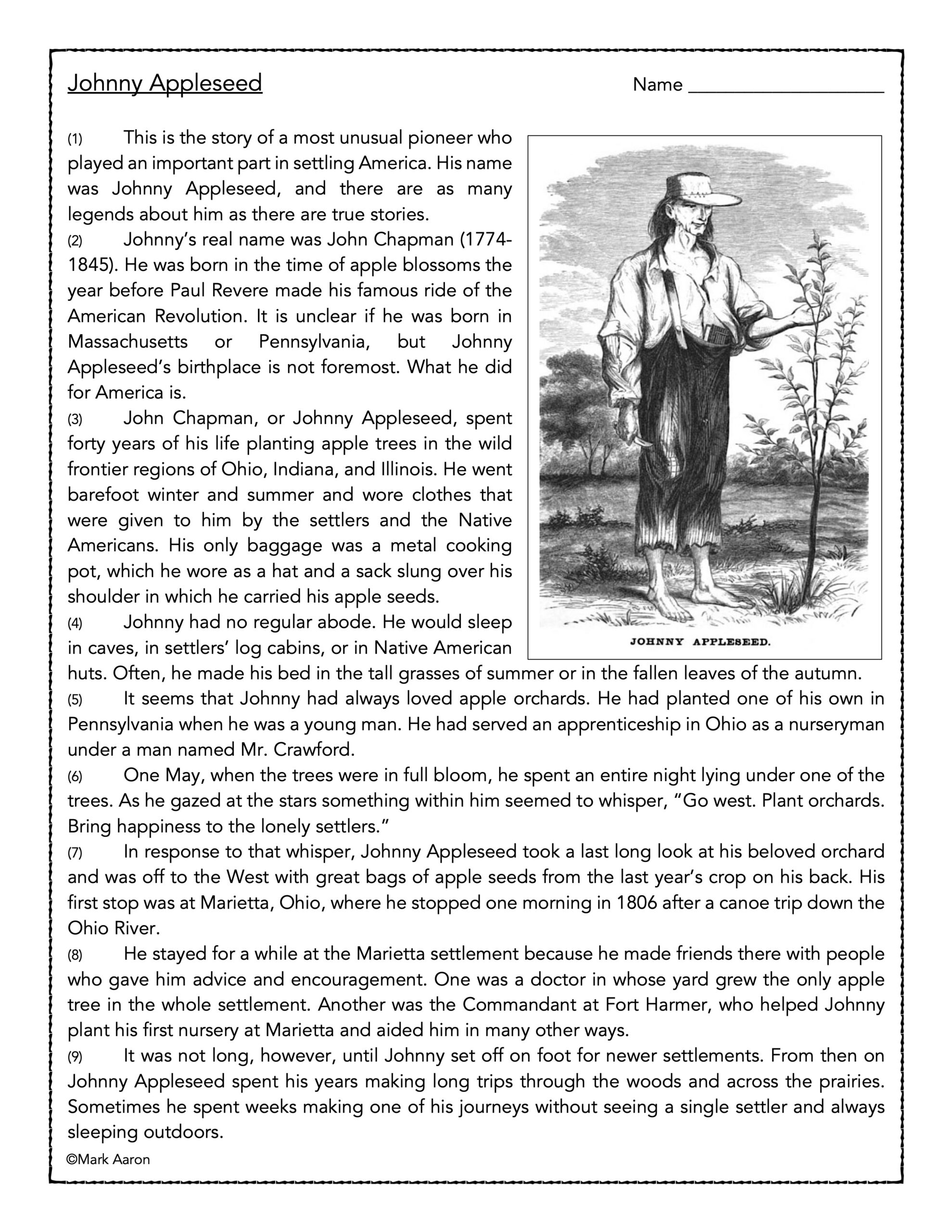 Johnny Appleseed Reading Comprehension Passages And Questions U0026 Activities Made By Teachers
