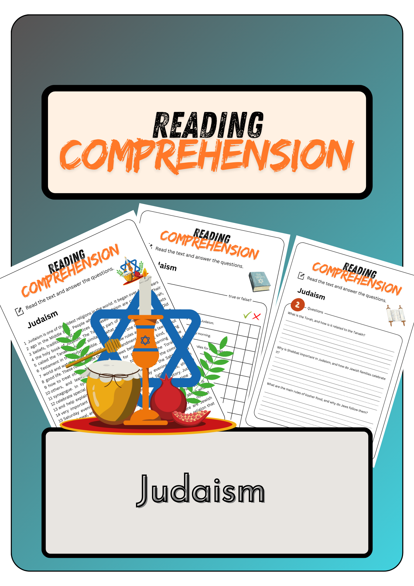 This worksheet is designed to test students’ understanding of key concepts in Judaism, such as holidays, traditions, and beliefs. It includes a variety of reading passages and comprehension questions to help students deepen their knowledge and critical thinking skills.