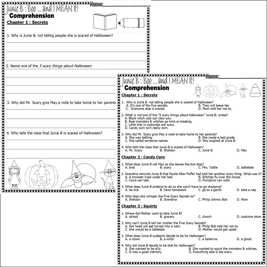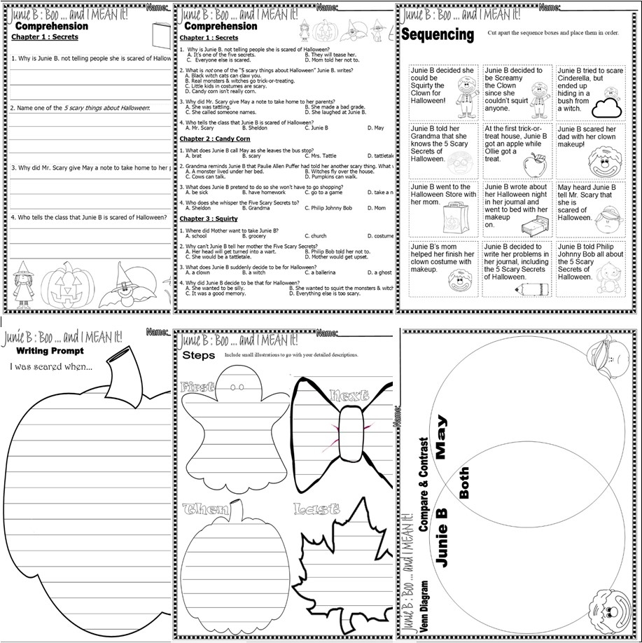 Junie B Jones Boo U0026 I MEAN IT Read Aloud Halloween Comprehension Book Companion Worksheets Made By Teachers
