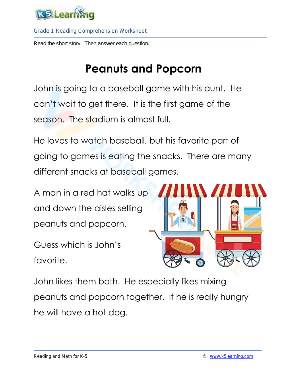 Free Printable First Grade Reading Comprehension Worksheets K5