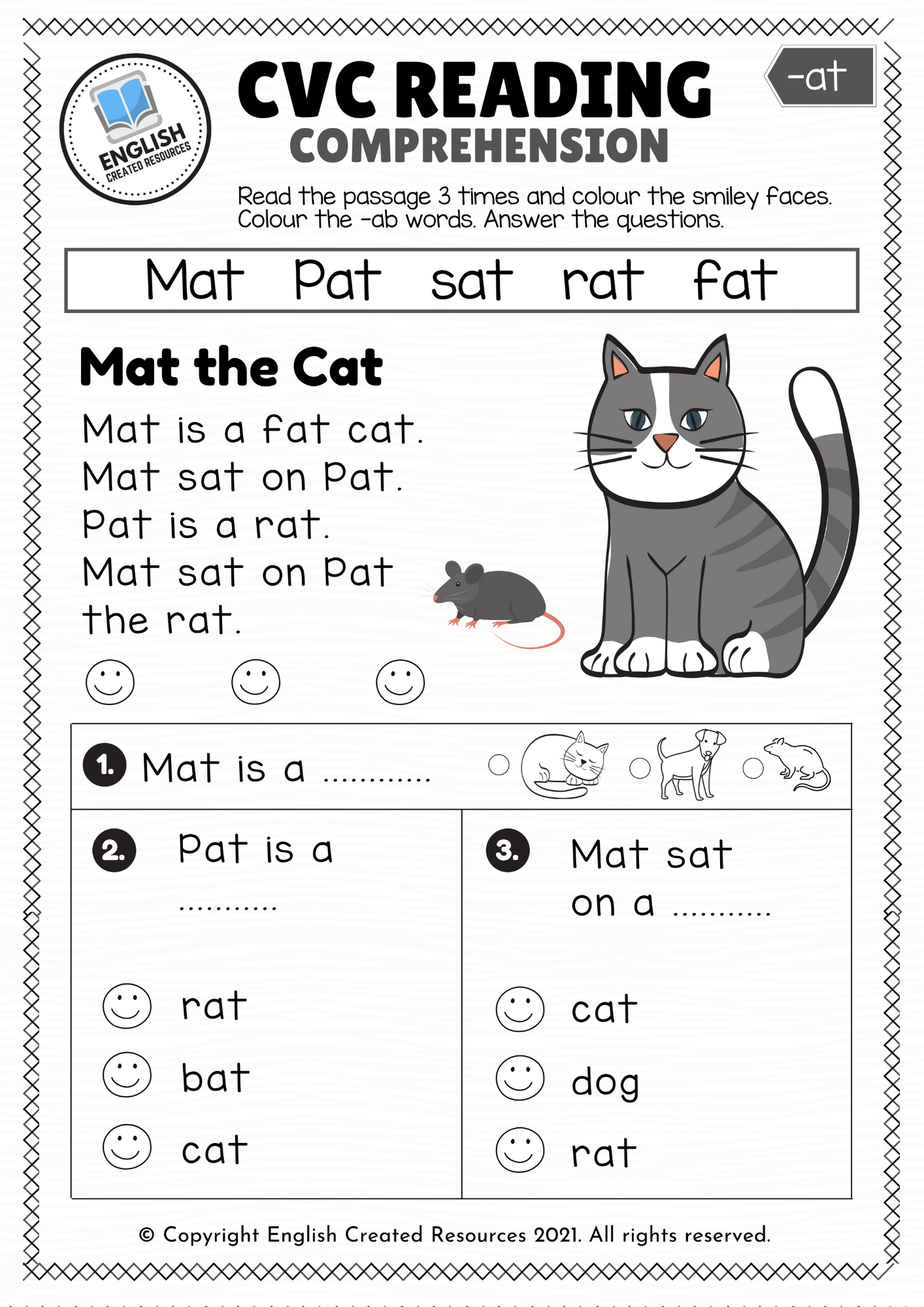 Kindergarten Cvc Reading Comprehension Worksheets Free
