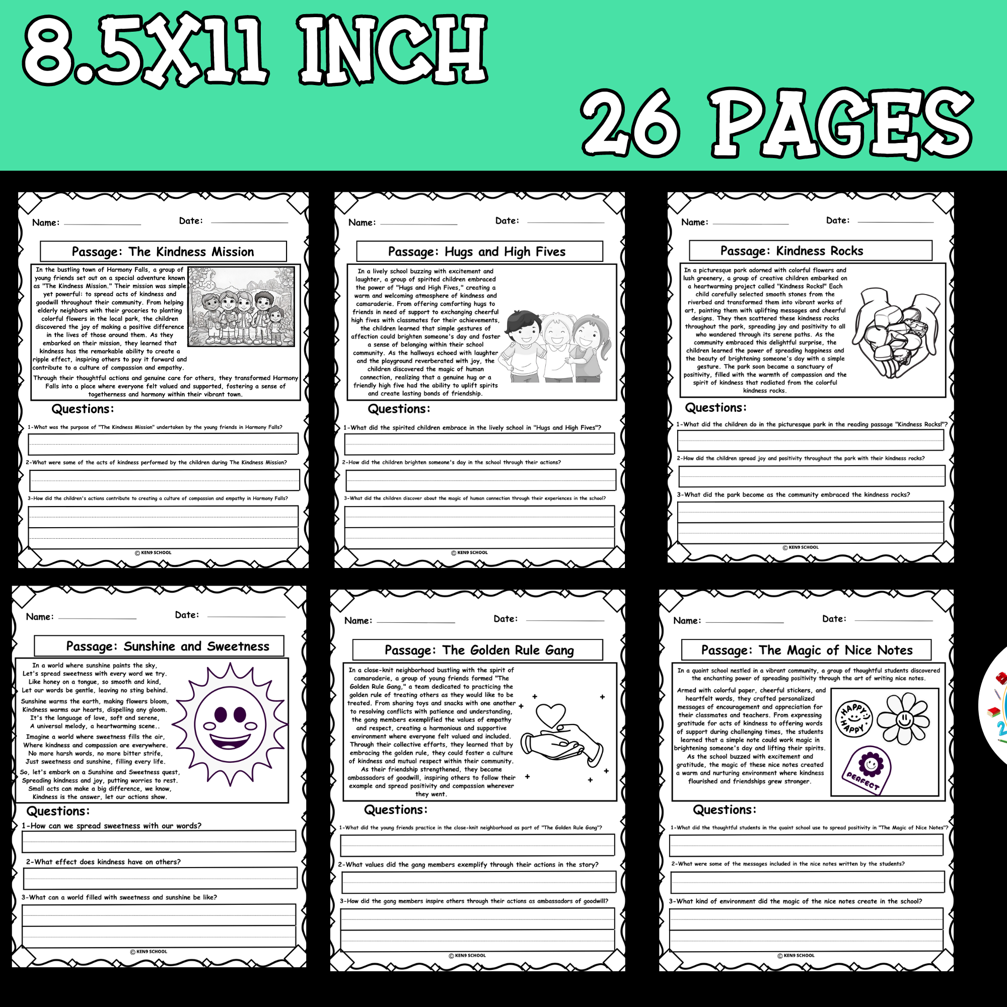 Are you looking for engaging and educational reading comprehension worksheets for your students or children? Look no further! Kindness-themed worksheets are a great way to promote empathy and social skills while improving reading comprehension.