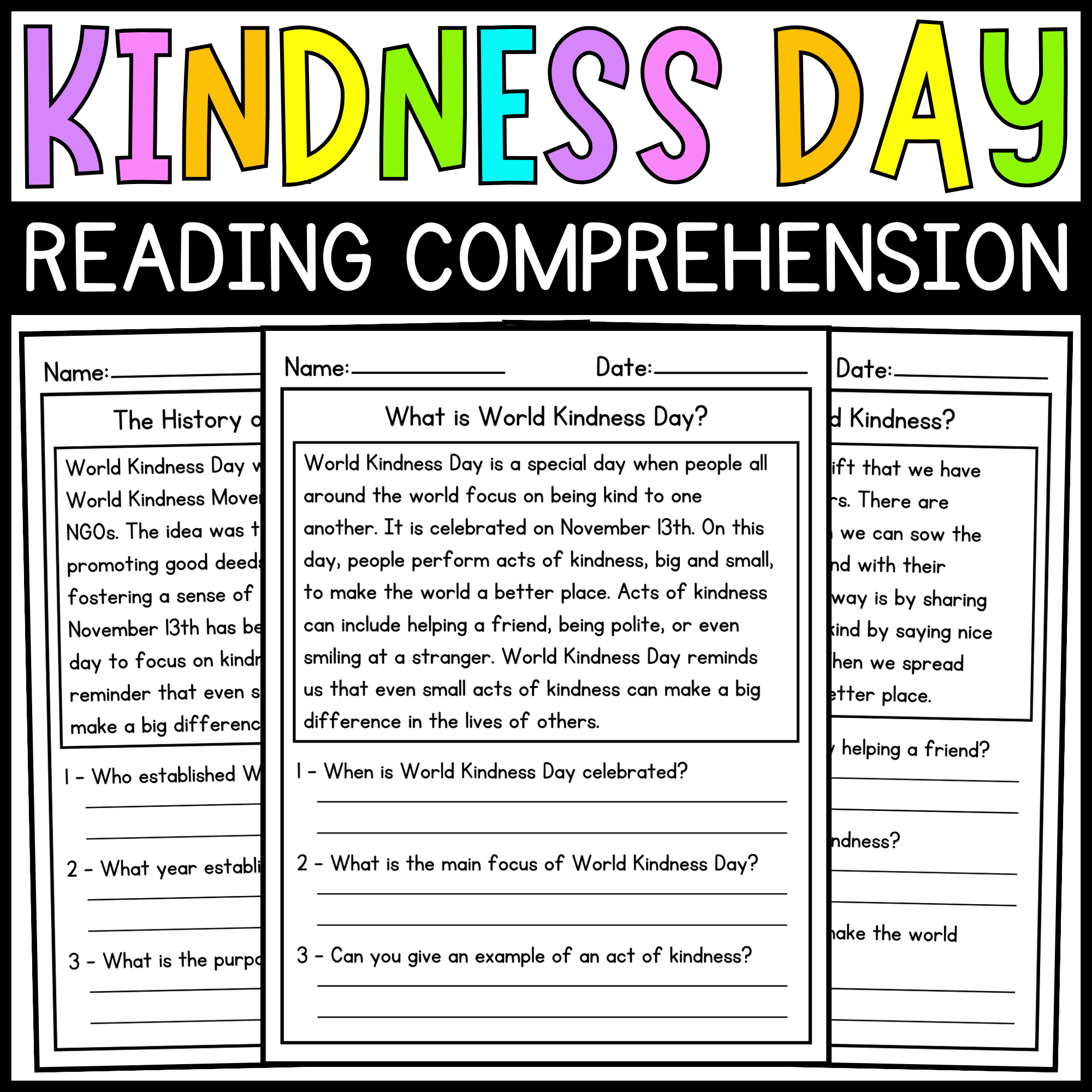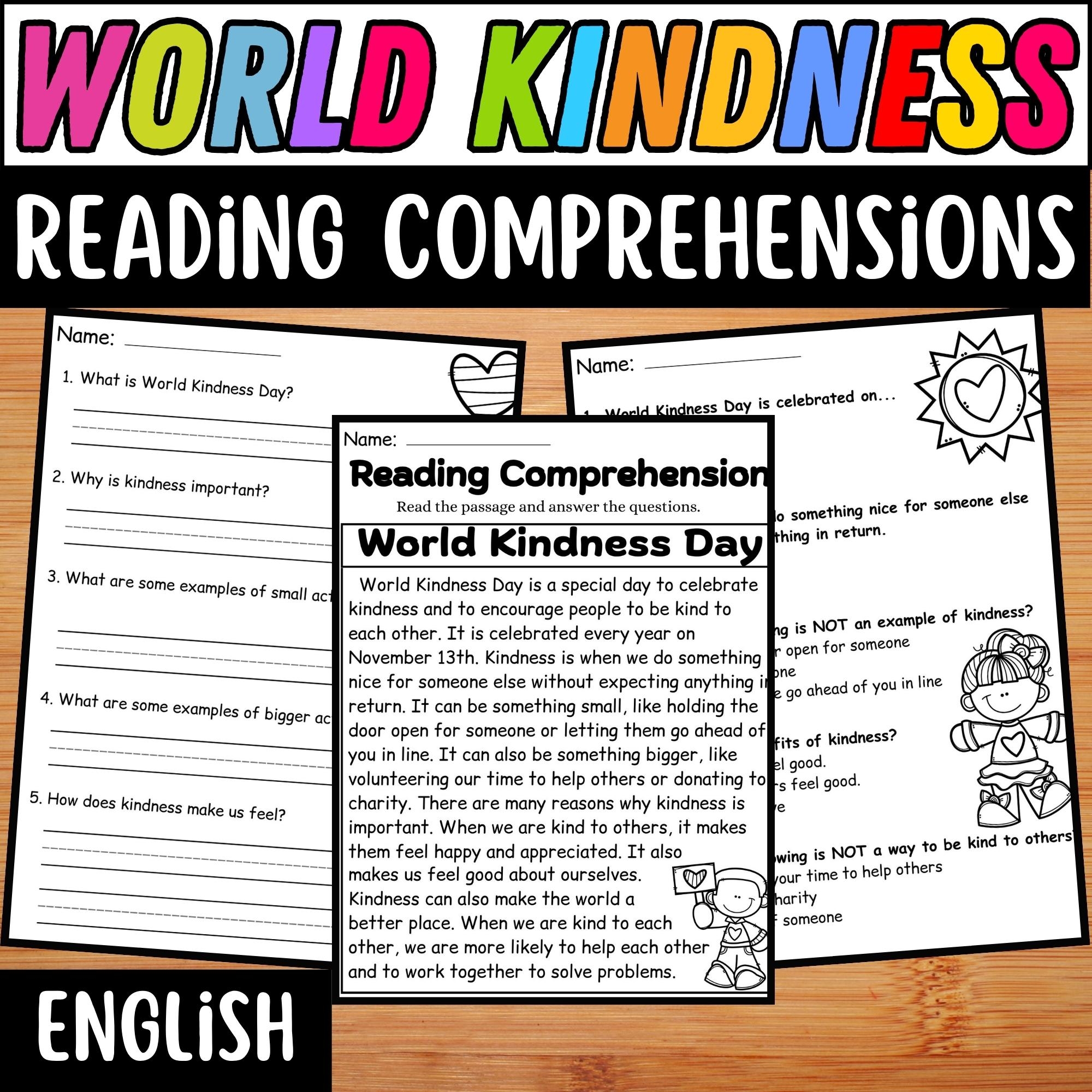 World Kindness Day Reading Comprehension Passage U0026 Questions November Activity