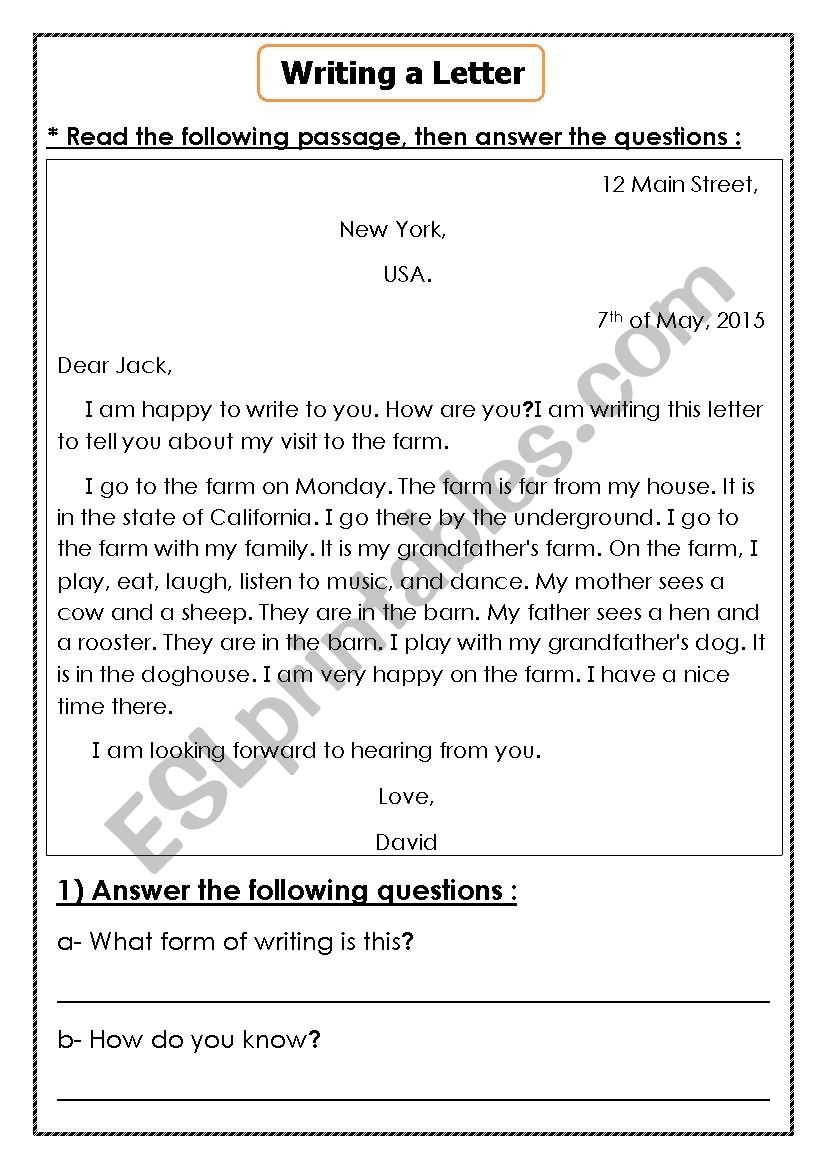 Reading Comprehension Letter ESL Worksheet By Eldaowdy