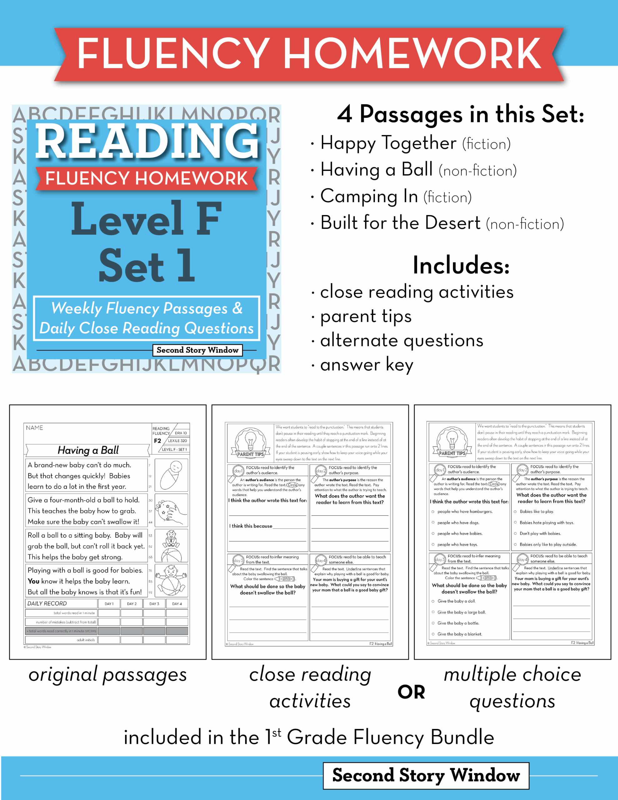 Reading Fluency Homework Level F Set 2
