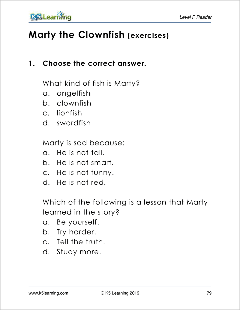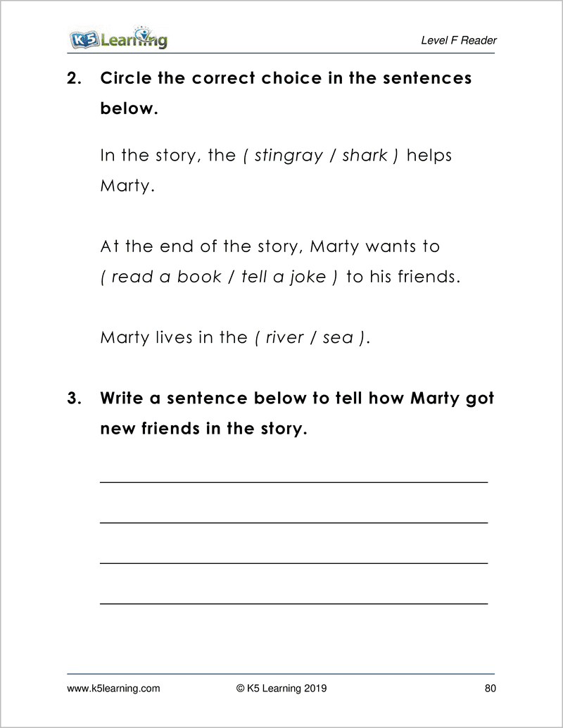 Level F Reading Comprehension Worksheets