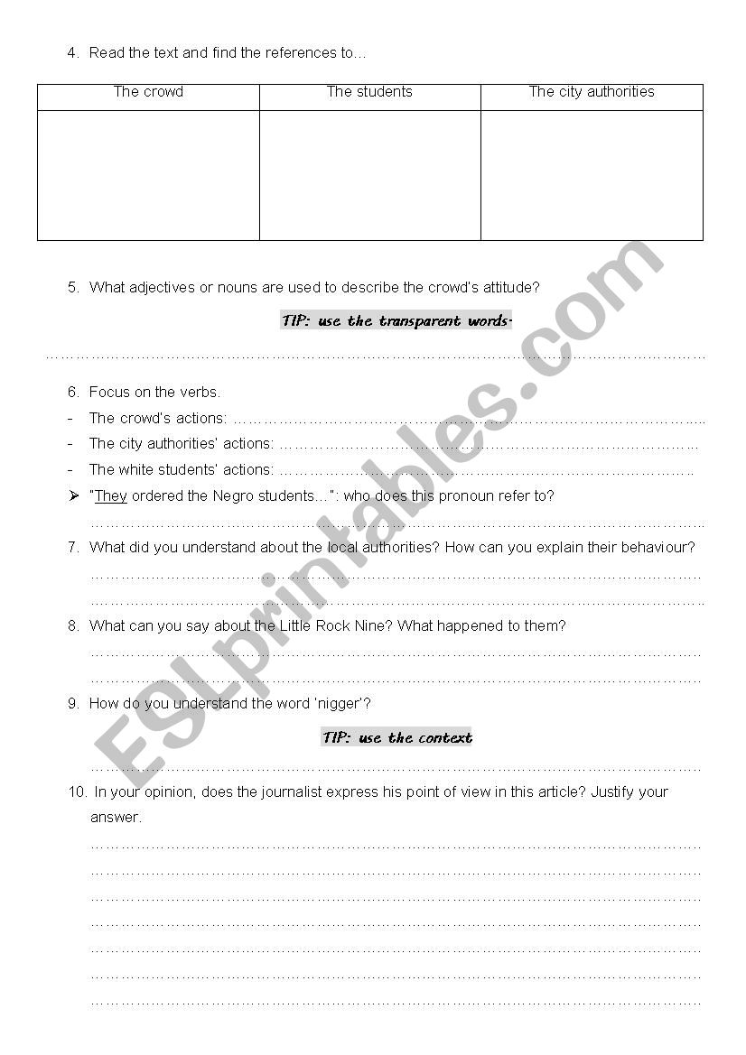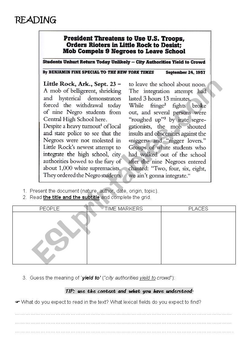 Article The Little Rock Nine ESL Worksheet By Madamev